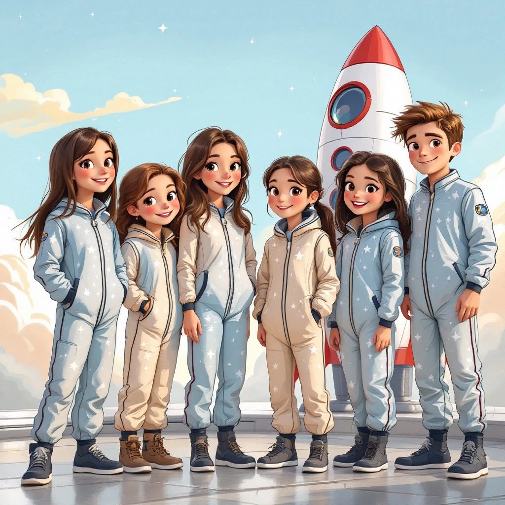 “We’re going on an adventure!” [Gemma](PD3KH335) shouted as she met everyone at the launch pad. They all beamed with excitement, wearing their space helmets and matching star-studded jumpsuits. The rocket was ready, and so were they.