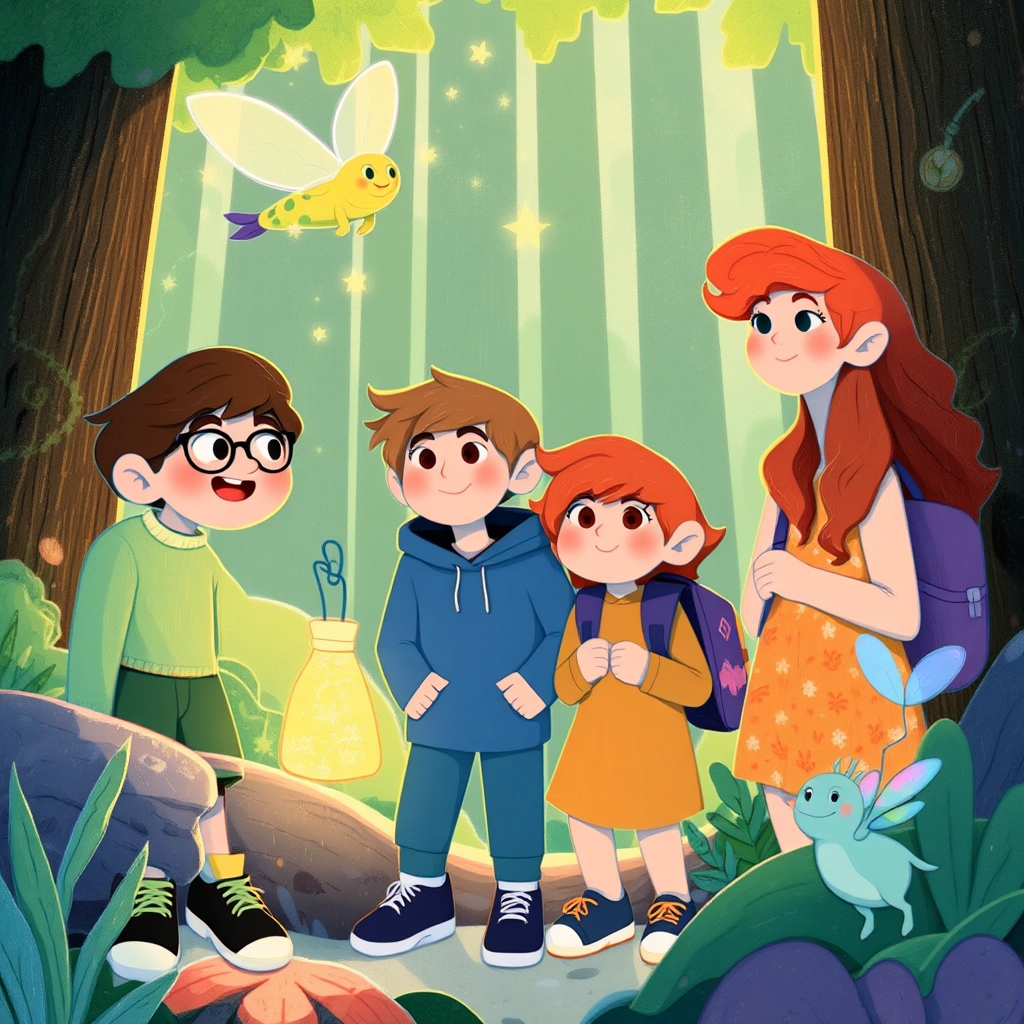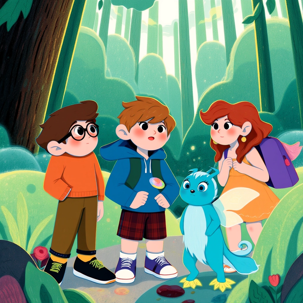 "I’m [Pippin](ZKT97ZDT)! I didn’t mean to startle you," the creature said. "I’ve lost my bag of stardust! Can you help me find it?" [Max](JDZCQ9MS) and [Lily](QJ6JFPYX) eagerly agreed, excited for the adventure.