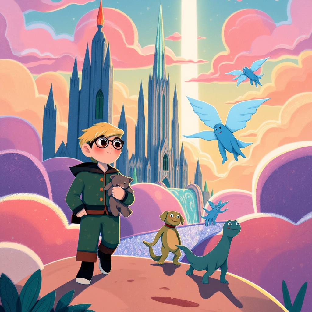 Next, they visited a floating city in the clouds. The buildings gleamed like crystal, and friendly flying creatures zipped in the air. 'Incredible!' said [Thomas](3Z7G4VRD) as a flying creature did a loop around him.