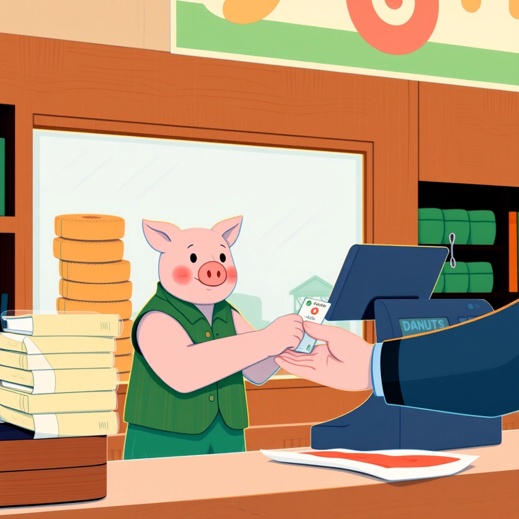 [Piglet Peter](TSR6RVZR) helped ring up orders. He was very good at counting coins and giving the customers their change exactly right.
