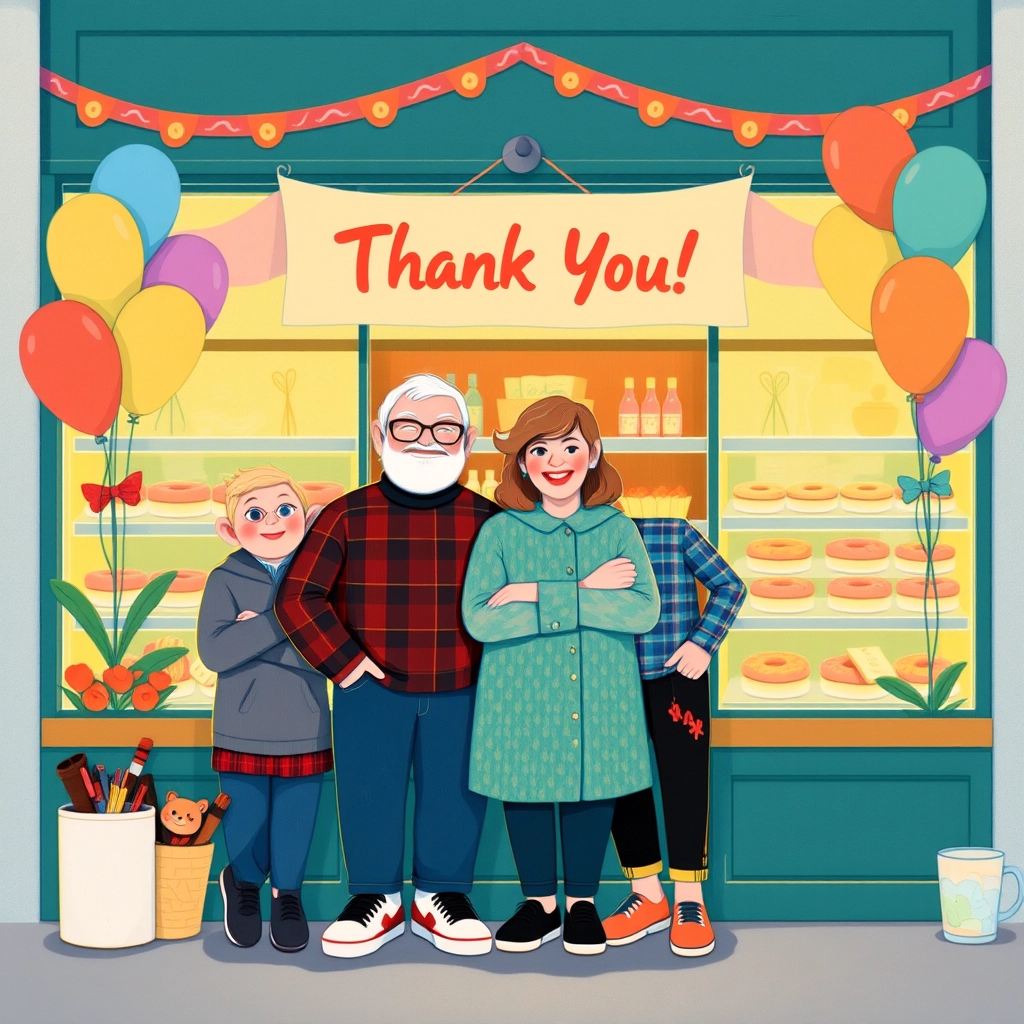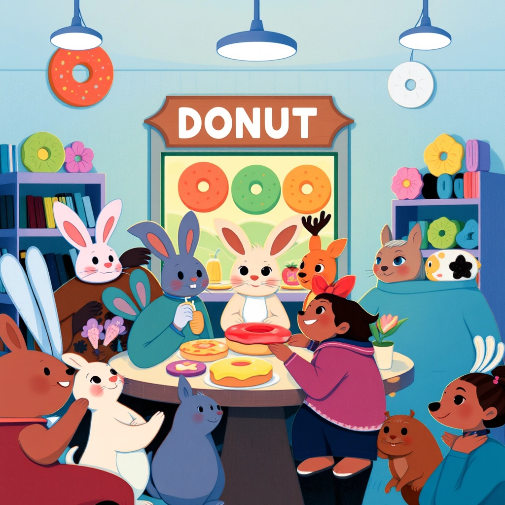 The Piggle family loved running the donut shop. It was always full of laughter, delicious treats, and happy friends. And every donut had a sprinkle of love!