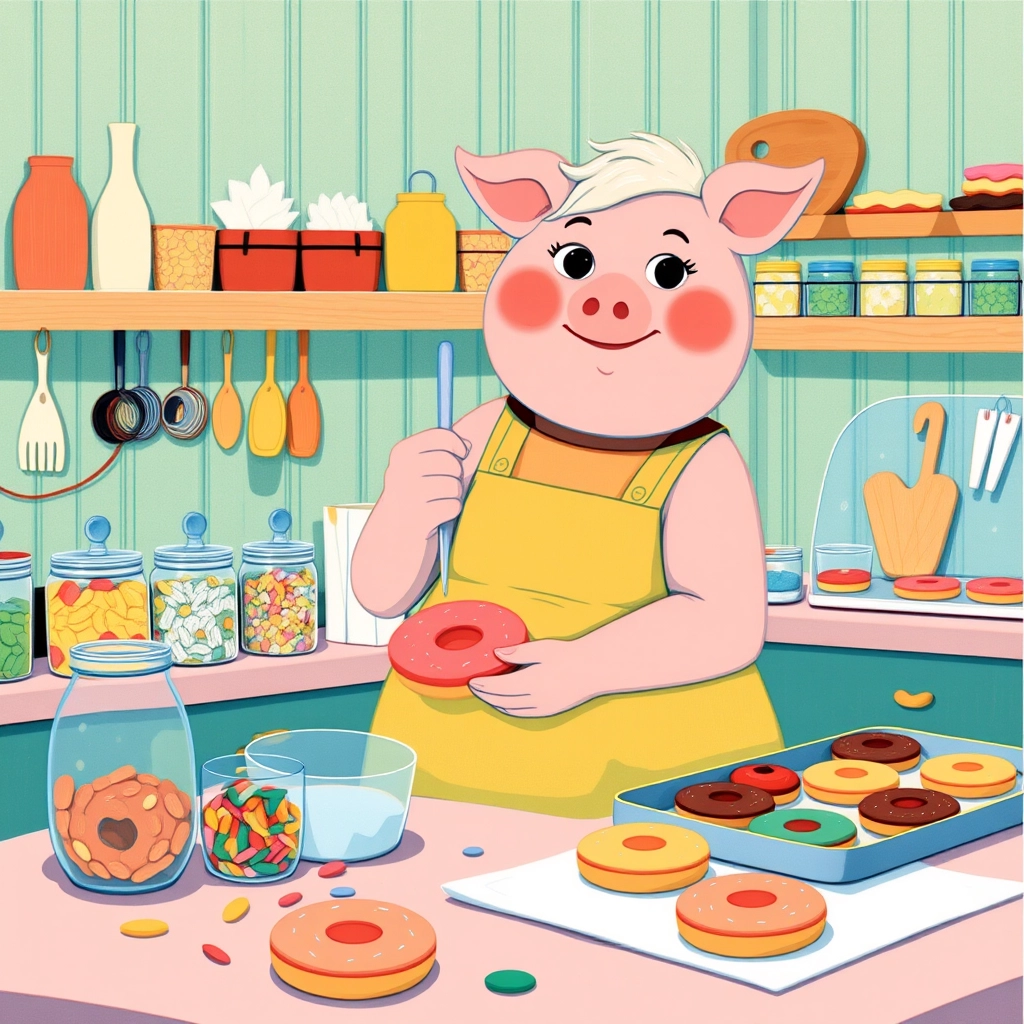 The Piggle family owned the most famous donut shop in town, 'Piggy Delights.' Everywhere you looked, there were donuts of all colors and flavors!