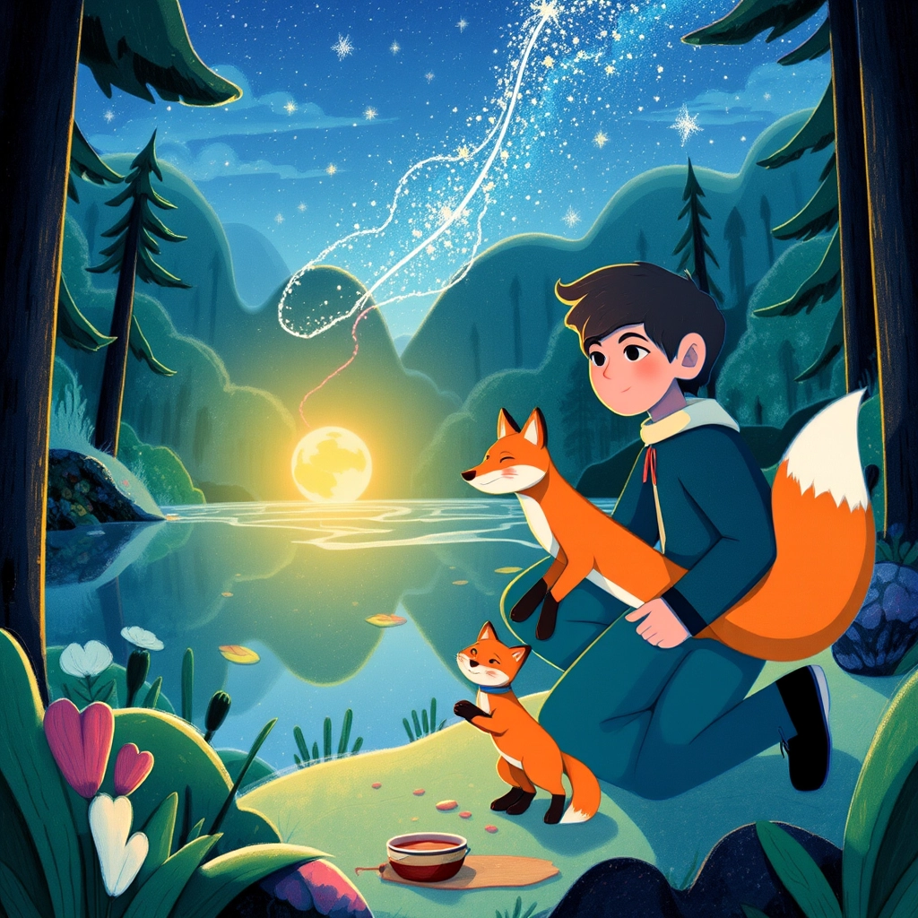 "Nico followed the string as it guided him to a sparkling lake. There, he met [Flora](TTW2D645), a friendly fox with bright orange fur and twinkling amber eyes."