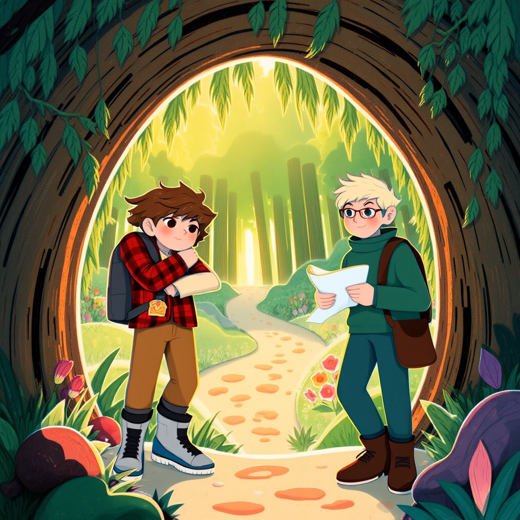 [Tracker](6TPCBYG7), a fearless 12-year-old with a knack for maps, and [Cohan](6DLK7HHQ), his curious younger brother who always carried a sketchpad, stood on the edge of the magical forest. They were off to find the Hidden Falls, a secret place their grandmother had whispered about.