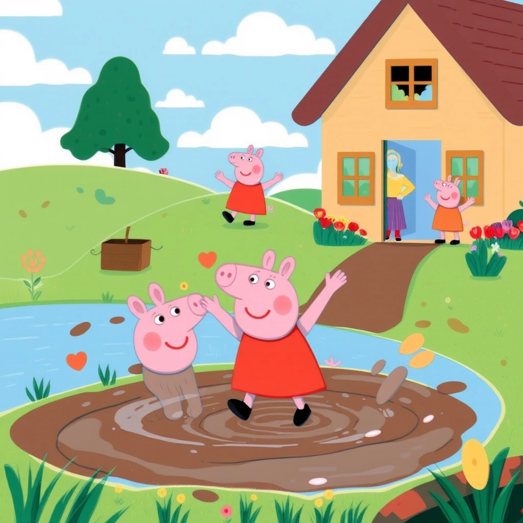 Over in her little house on the hill, [Peppa Pig](KZXSKQDK) was jumping in a small muddy puddle—splash splash! “Mummy! Daddy! I’m going to a picnic with my friends!” she shouted happily.