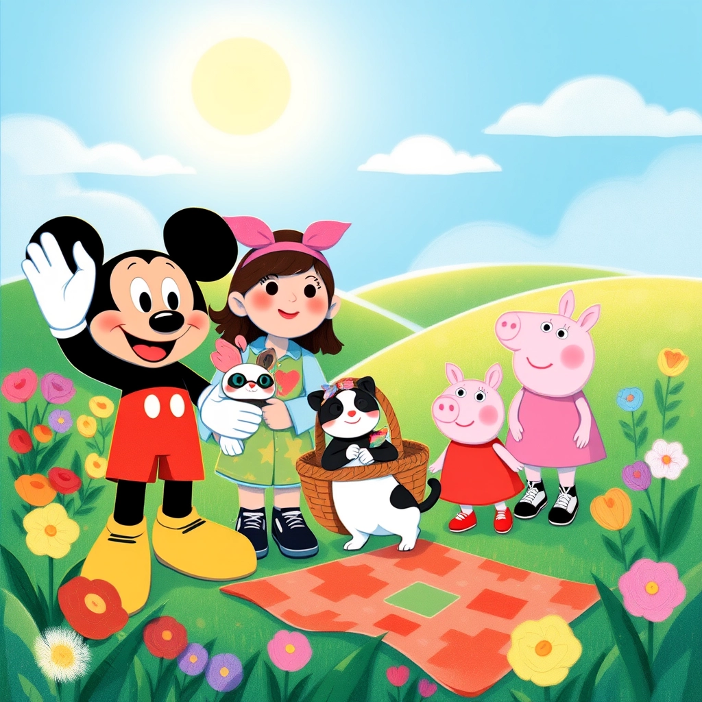 Soon, all the friends met in a bright green meadow filled with flowers. “Hiya, pals!” Mickey waved. “Hi everyone!” [Gaby](3QQKV2KD) and Pandy chimed. “Hello!” snorted Peppa.