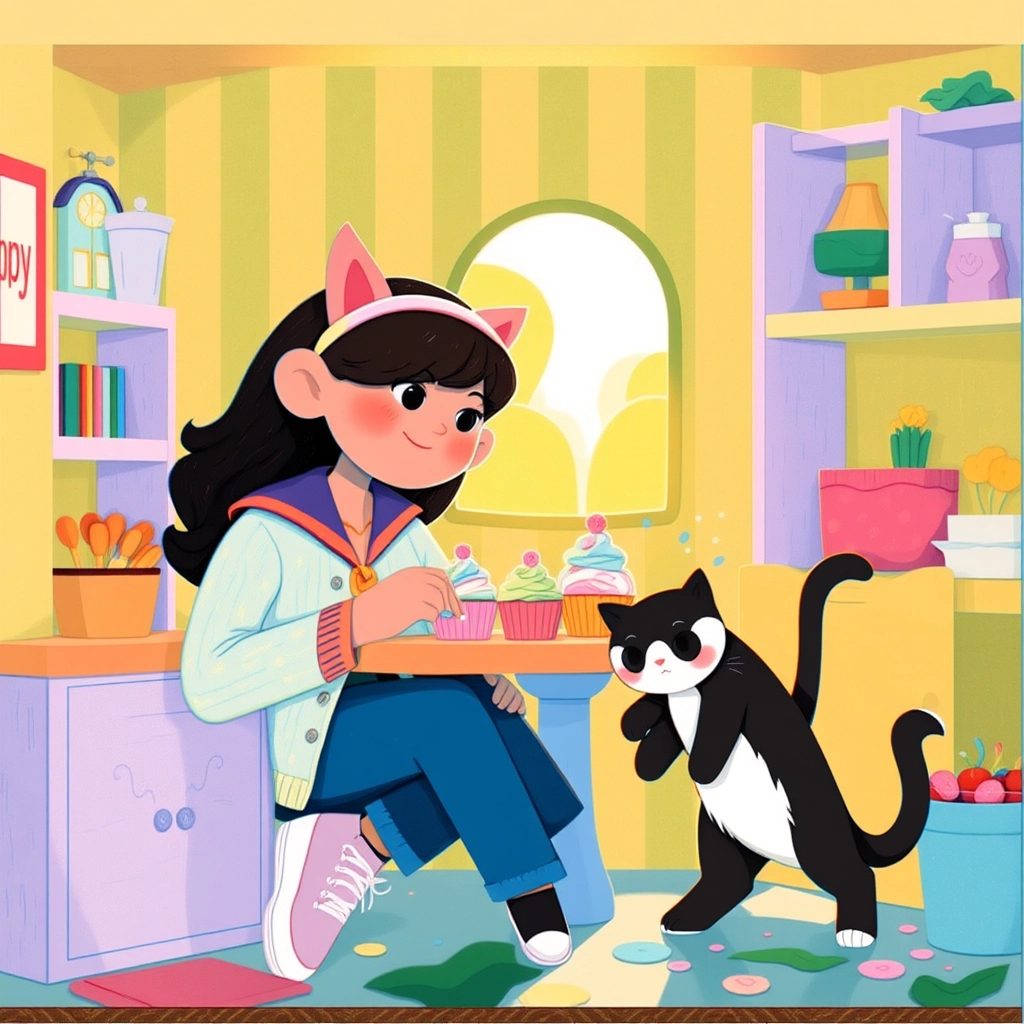 At the same time, in her colorful dollhouse, [Gaby](3QQKV2KD) was decorating tiny cupcakes while [Pandy Paws](LSFQY62R) helped by adding rainbow sprinkles. “This is going to be the cutest picnic ever!” [Gaby](3QQKV2KD) giggled.