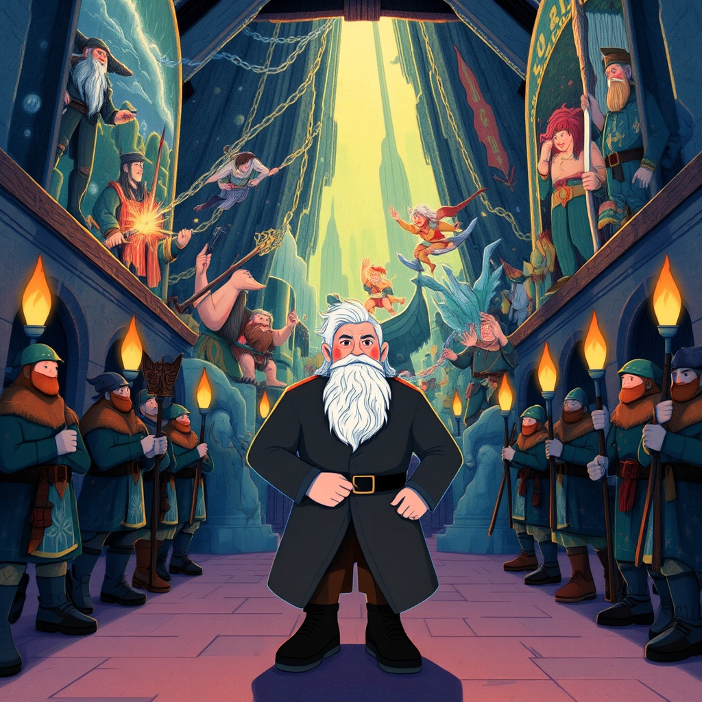 At the end of the great hall stood [Zyl Grayshadow](MQ4CNM4P). Draped in black and silver, Zyl’s braided beard was adorned with intricate platinum rings that glimmered under the high window’s sunlight. Her sharp eyes followed Bill as he entered. With a firm step and calm authority, she greeted him warmly, 'Scant remembers you, [Greybeard Bill](59HZ3WMH).'