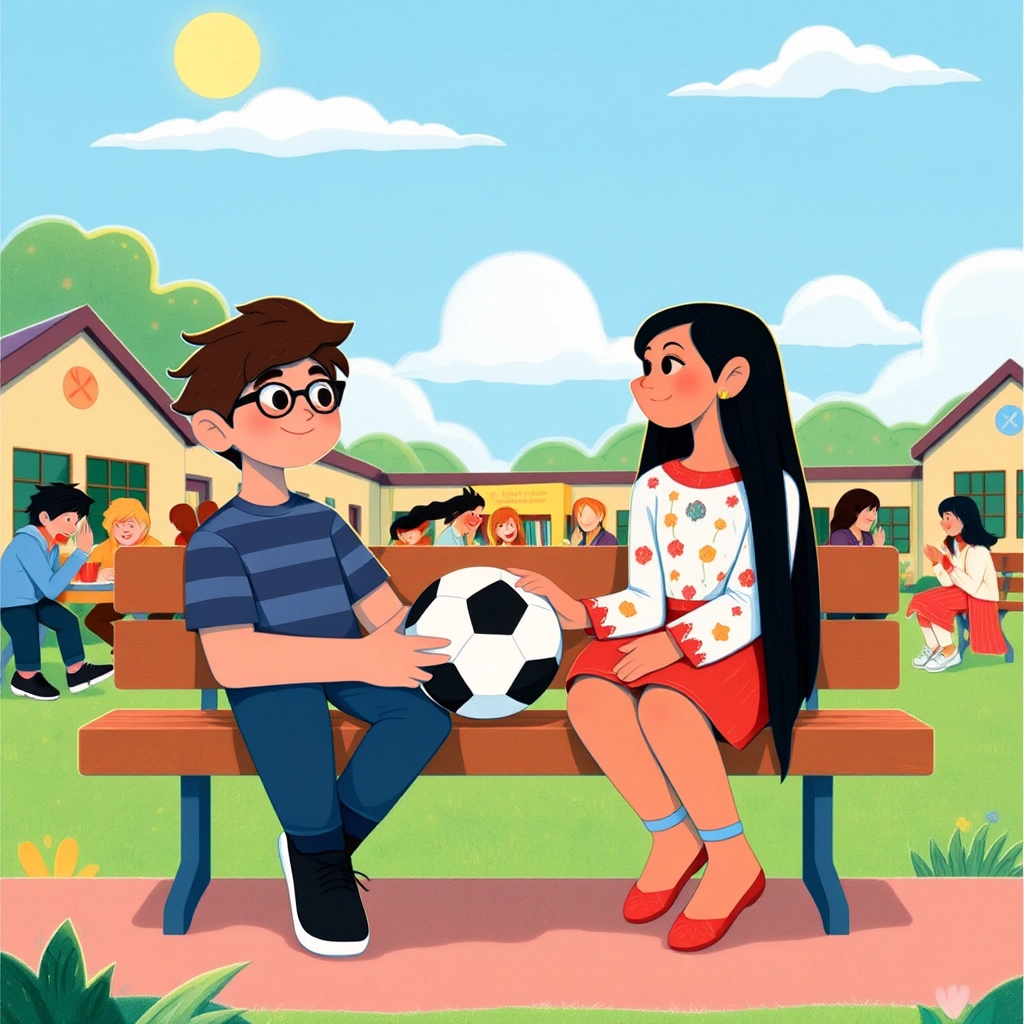 [Amaya](5TTHDFHJ) quickly noticed how [Lucas](TB7S2LSB) was treated. She introduced herself during lunch break and asked him to teach her soccer. [Lucas](TB7S2LSB) was surprised but smiled as he agreed.