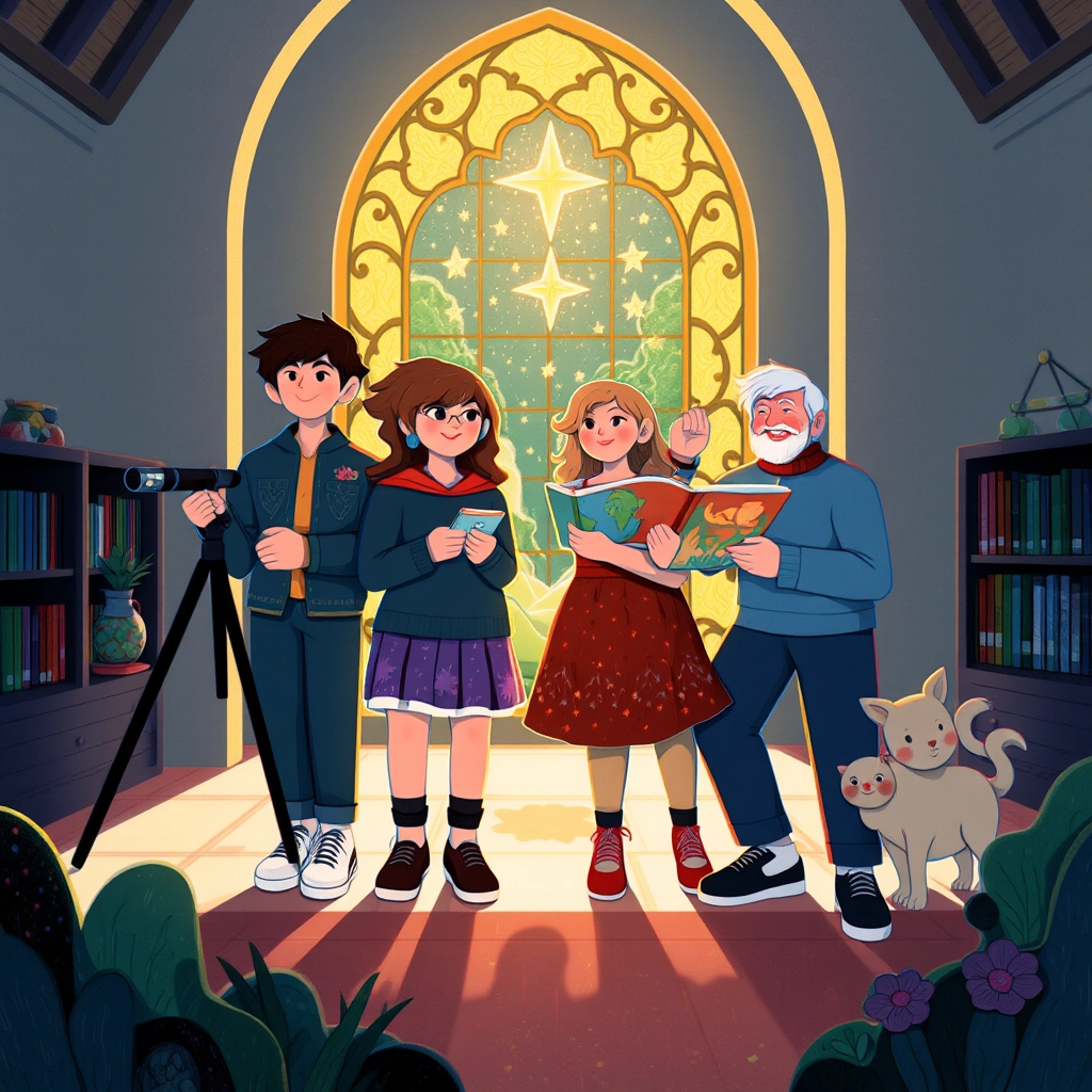 Each of them brought their unique talents. Amara painted maps to guide their way, Zara solved riddles that unlocked hidden clues, and Leo used his telescope to scan the skies for the missing star.
