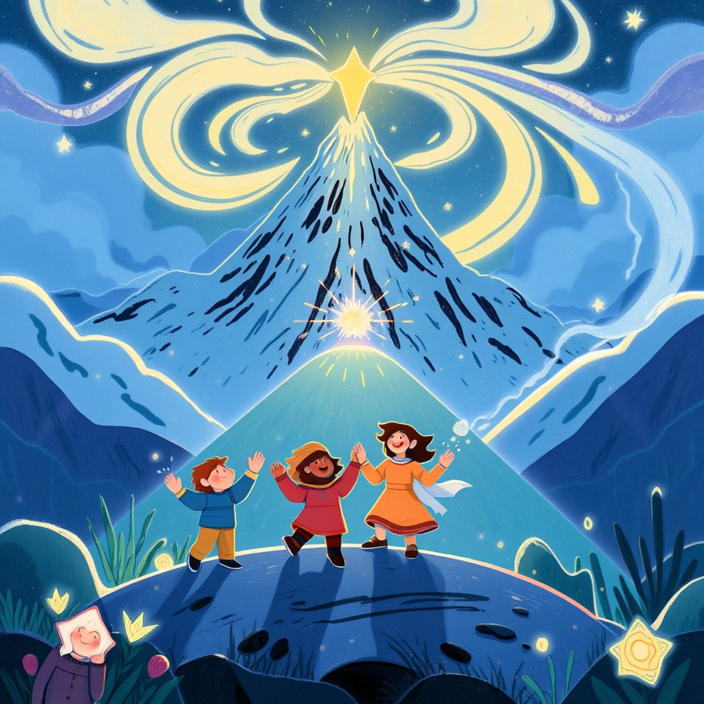 After days of adventure, they found the missing star trapped inside an enchanted crystal atop an ancient mountain. The family united to break the spell and free the star.