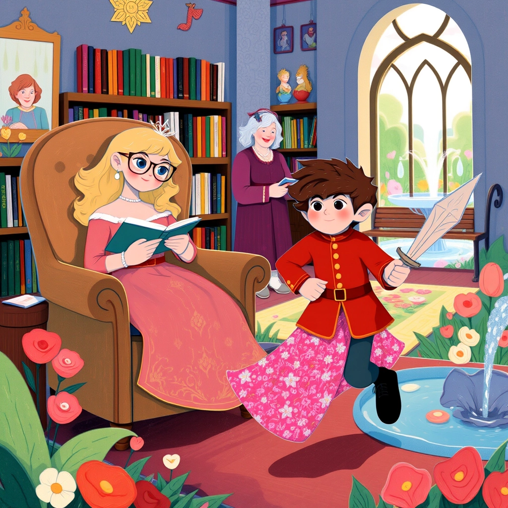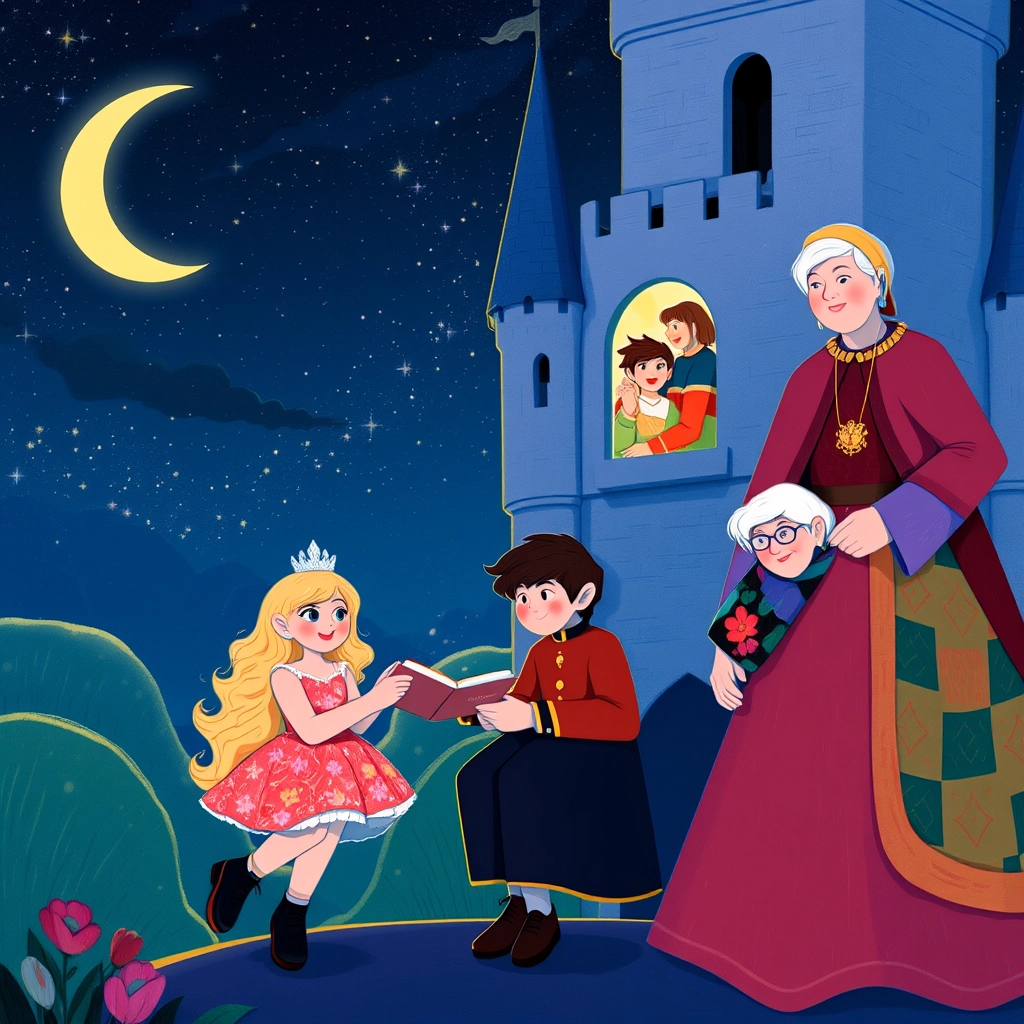 Once upon a time, in the heart of a magical kingdom, there lived a curious princess named Lila and her adventurous brother, [Prince Oliver](B9B7MBH7). They lived in a beautiful castle with their wise mother, the Queen, and their cheerful grandmother, [Gran Mimi](GRHYR7DP).