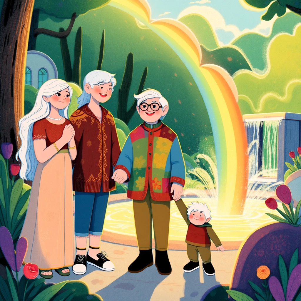 The scroll read: 'This treasure is for those who work together with love and kindness.' From the fountain sprang a rainbow-colored mist that made everyone laugh with joy.