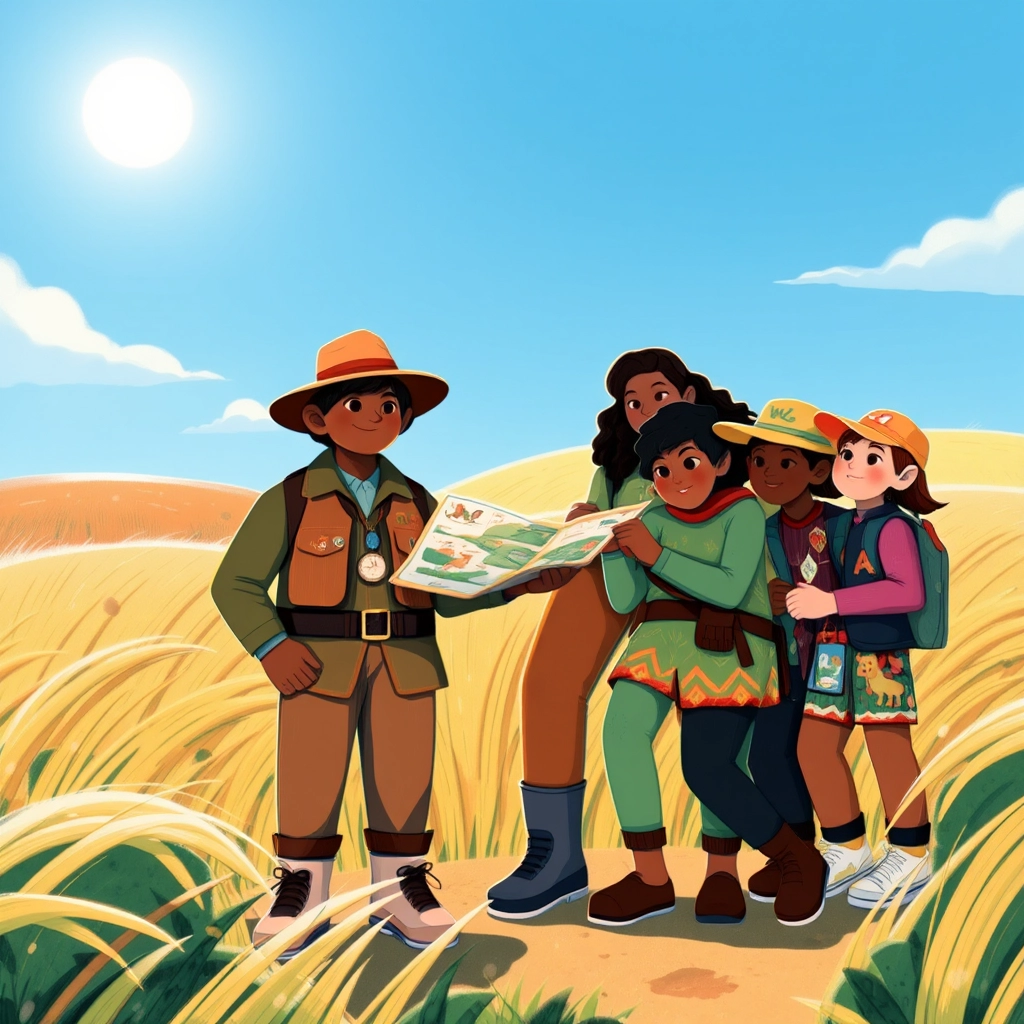 On a glorious morning, [Leo](WT4JRNSJ) and [Maya](CKNS3G9R), two renowned wildlife adventurers and explorers, along with a group of five curious kids, set off on an incredible journey. They had heard the legend of the Sacred Stones, which protect animals and their habitats across the world. Their mission: to find these stones and restore the wild's magical balance.