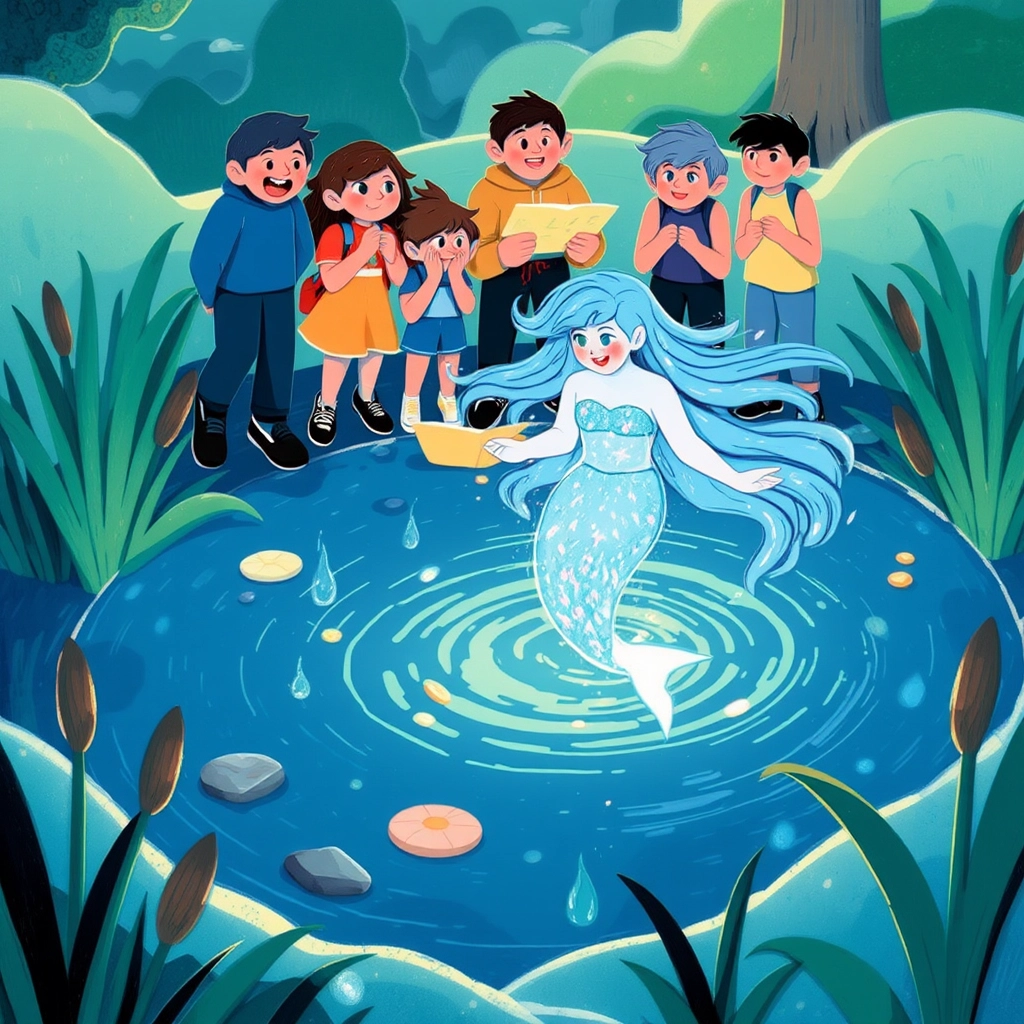 The map led them to a glimmering pond where they encountered [Ariel](CDH76M2H), a playful water spirit who offered a puzzle to solve.