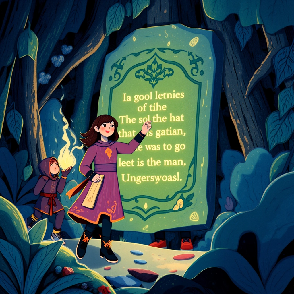 Suddenly, a riddle appeared on an ancient stone: 'What has roots as deep as a tree but dies if you give it water?' [Hana](2M3T7R29) exclaimed, 'I know it! A fire!' The stone creaked open, revealing a hidden path.