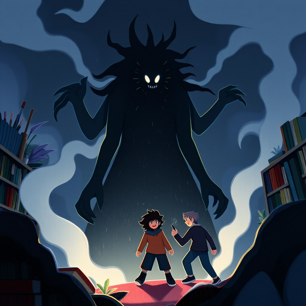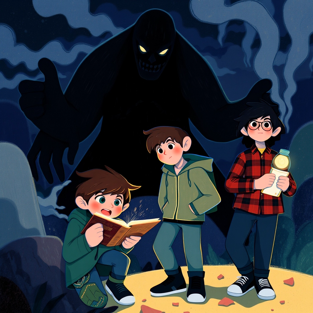 As the shadows grew, a menacing figure materialized—a creature called [Malakar](S5TTZPS2), forged from pure darkness with gleaming white eyes. The boys realized they had unleashed something far more dangerous than they could have imagined.
