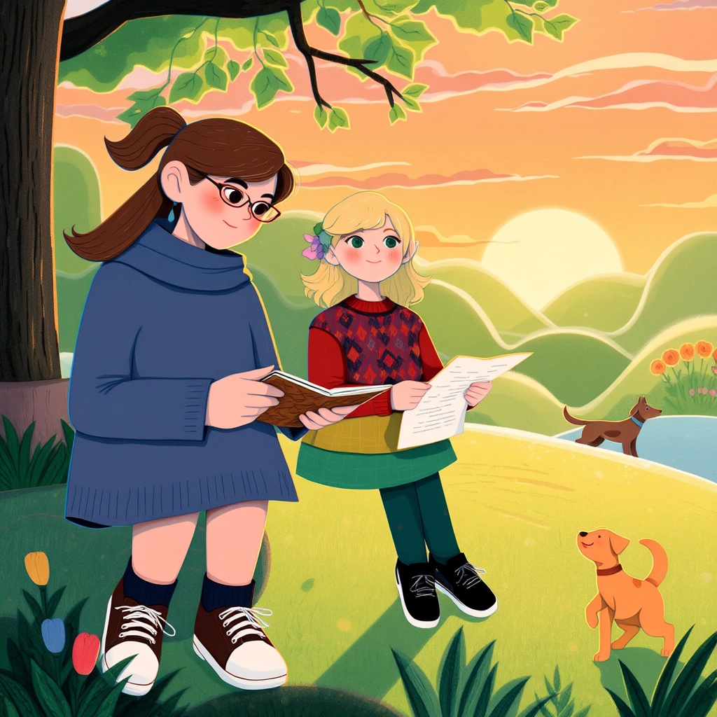 They decided to meet at the park every day after school, sharing stories, books, and laughter. [Lila](ZD7NPGGL) discovered that [Mia](NKZ3NWB7) loved to draw, and [Mia](NKZ3NWB7) found out that [Lila](ZD7NPGGL) wrote poems.