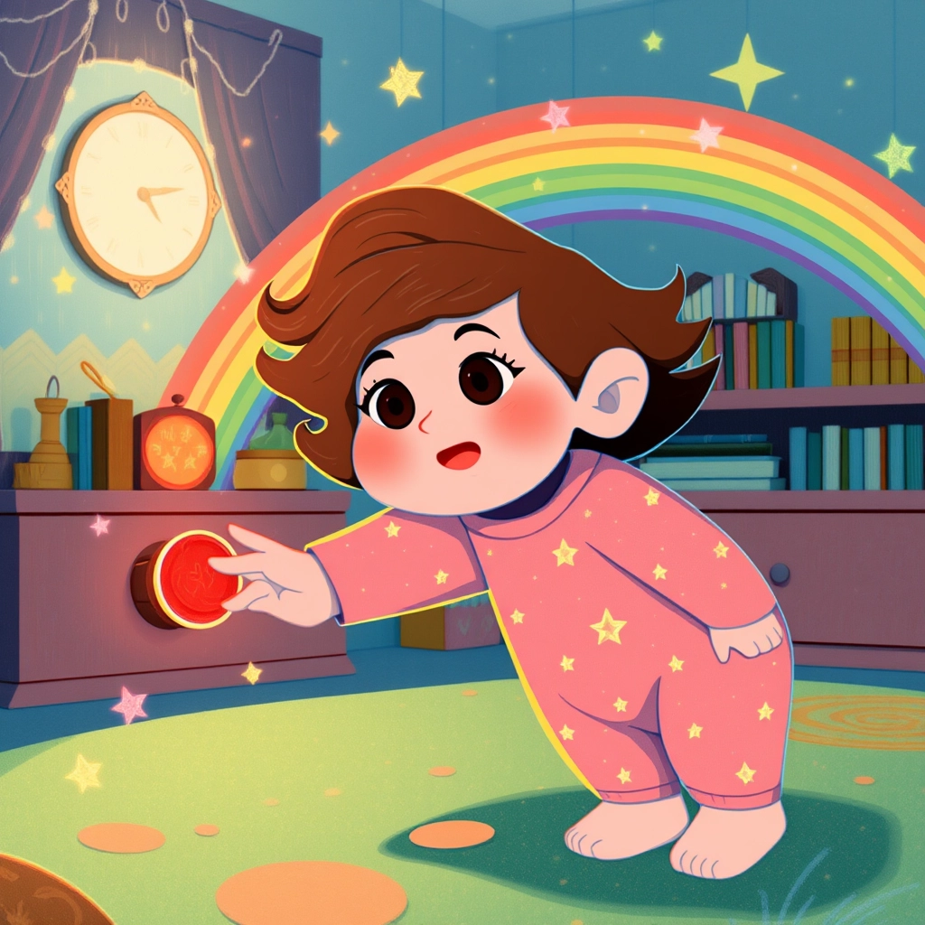 One day, [Baby Mia](ZP7NGLXD) crawled up to the Silly Switch and accidentally pressed it. Suddenly, the room began to shimmer in a rainbow of magical light!