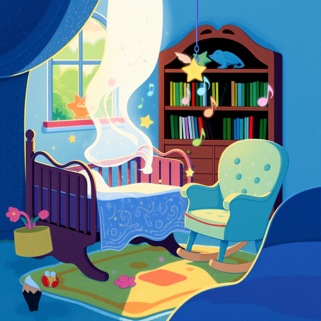 Even the crib and rocking chair got in on the fun, rocking themselves to catchy tunes while a music box made cheerful jingles in thin air.