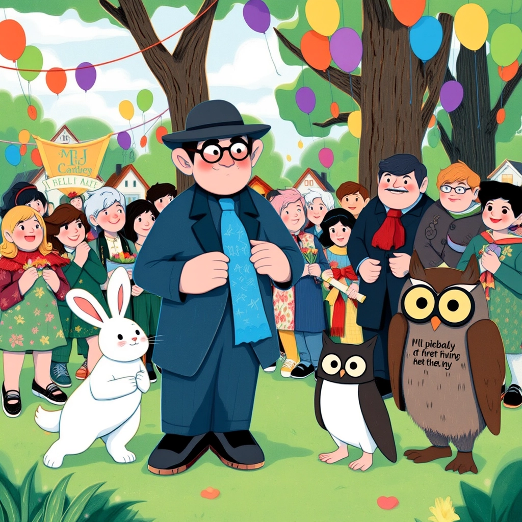 From that day on, [Mr. Sorrypenny](MX3VWG3M) became known as the man who spread joy instead of apologies. And every time Tilly or [Professor Hootkins](V2QBCGC7) visited him, he whispered, 'It’s never too late to be better!' And they’d all laugh together.