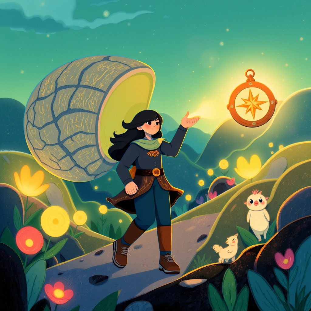 "Follow the compass, and let it teach you about love," said [Grandan](BRWPPKSW). And so, Tilly began her journey, guided by the compass's light, learning important lessons about connection, trust, and building with others.