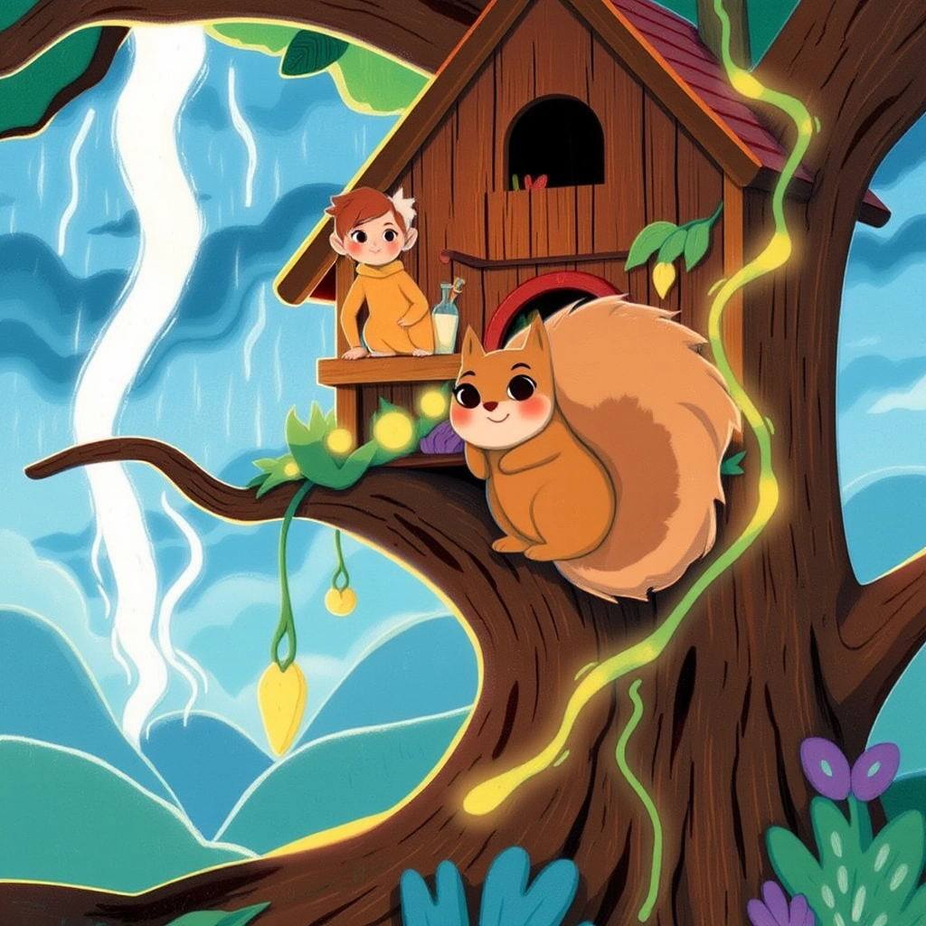 Tilly then found a shy squirrel named [Pip](PK5NLL43), who was afraid of storms. Using the Builder's Compass, she taught [Pip](PK5NLL43) how to construct a cozy storm-resistant treehouse, reminding him that love is built on safety and care.
