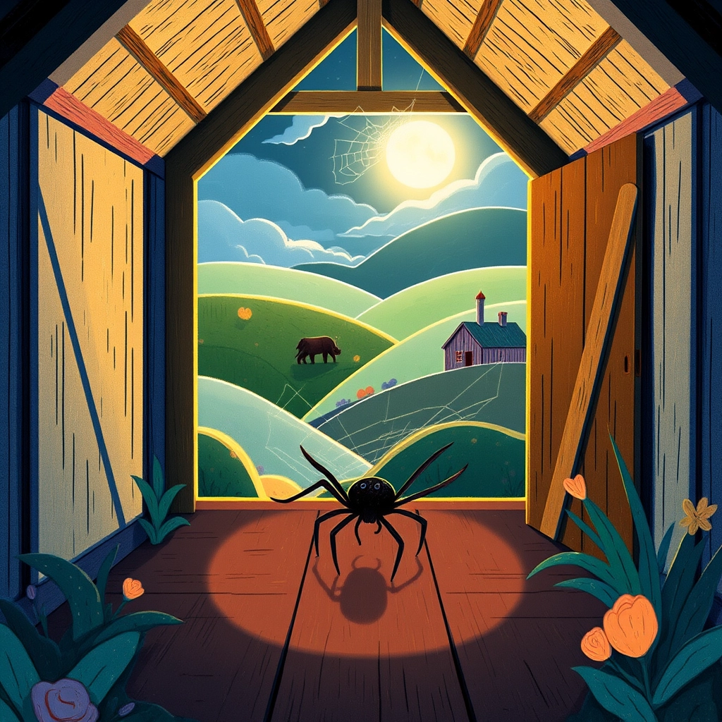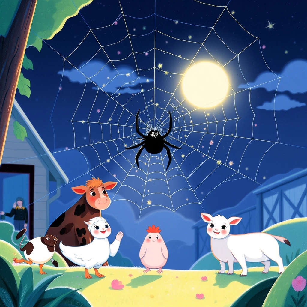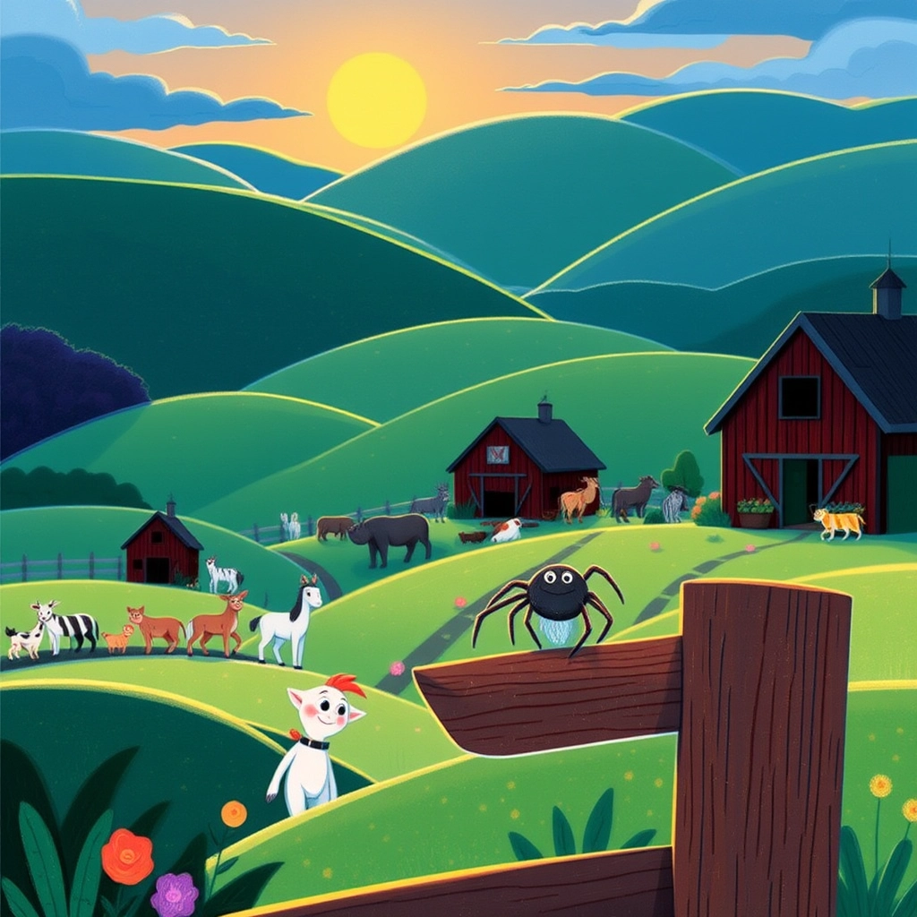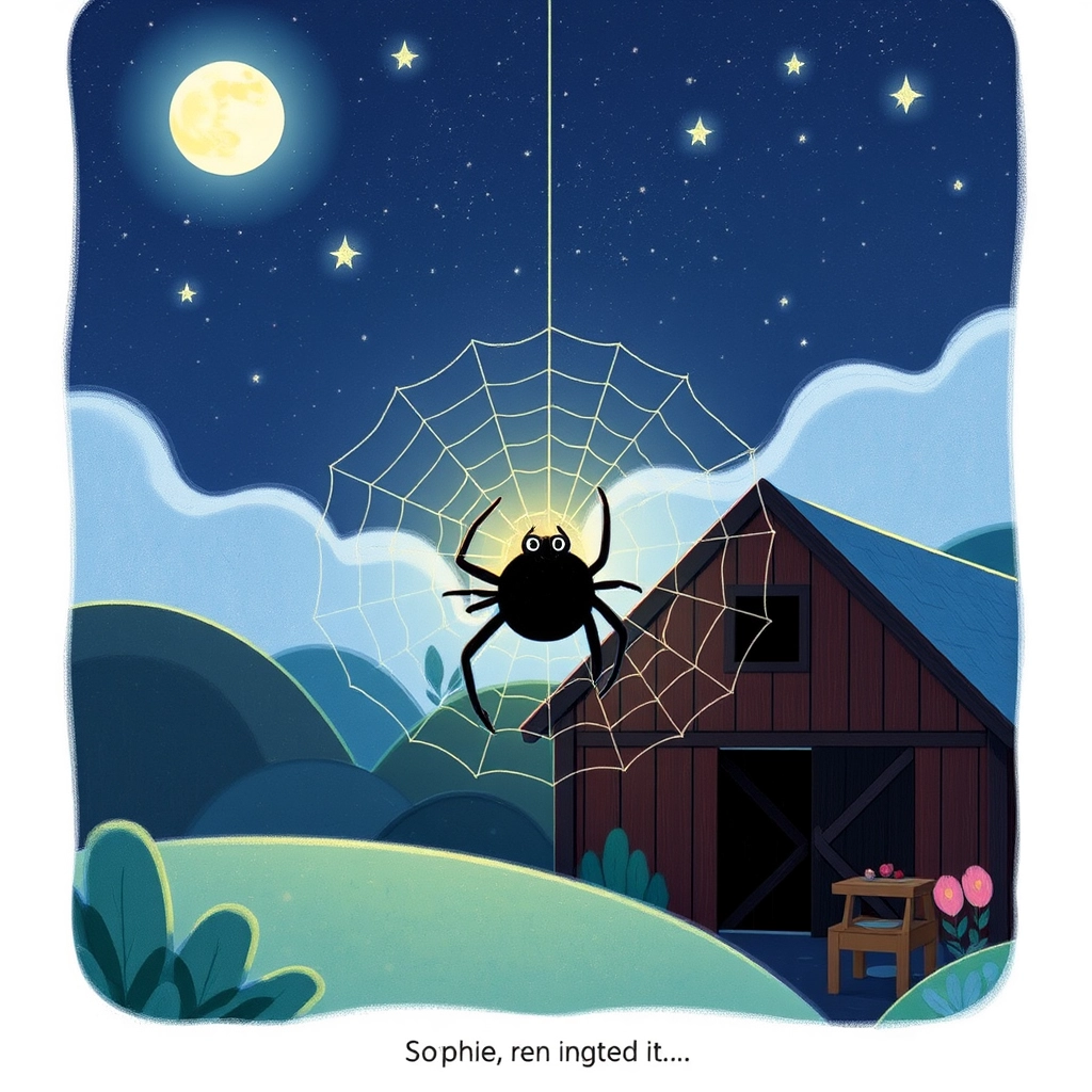 On a farm surrounded by rolling green fields, lived a friendly little spider named [Sophie](KZ4N9SJ6). [Sophie](KZ4N9SJ6) loved the farm and all its animals, but one night, she realized she had no place to sleep!