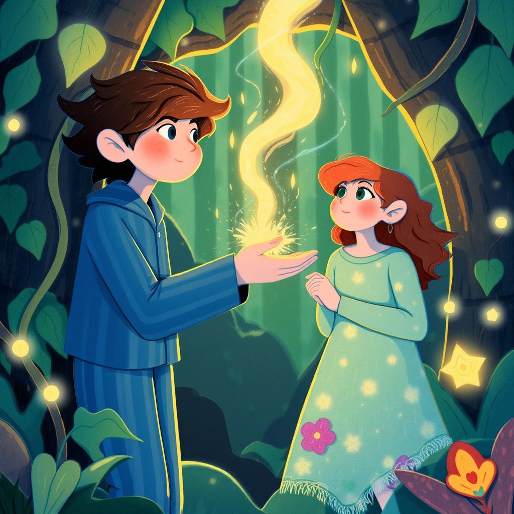 One moment, [Jamie](WZ4XQWKN) was in a hospital bed with machines humming around him, and the next, he found himself standing in a forest glowing with strange, magical light. He felt different, lighter—but not alone.