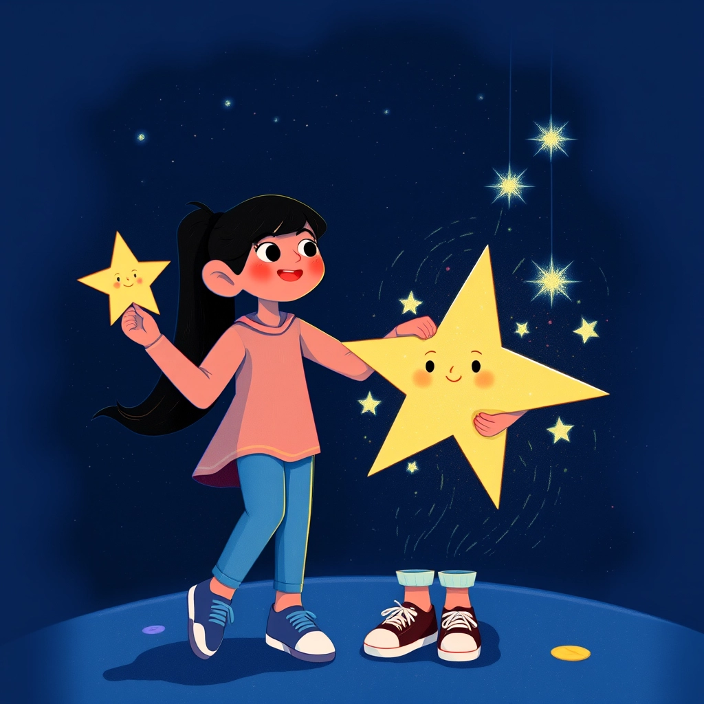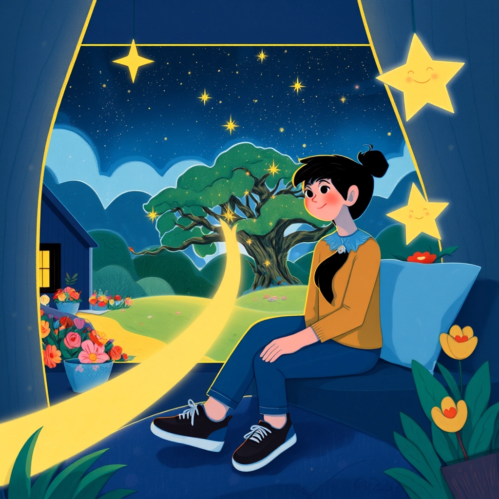 [Maya](SXVNL36M) loved looking at the night sky from her bedroom window. Every evening, she'd count the stars and make wishes. But tonight, a streak of light zoomed across the sky, heading straight for her backyard.