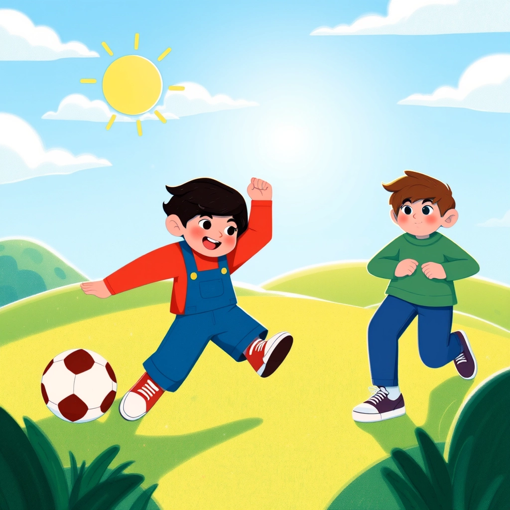 [Billy](MZHWPJPX) sighed. 'Okay, fine. But I choose the game!' [Timmy](CW42DGRG) smiled and said, 'Sure!' [Billy](MZHWPJPX) grabbed a ball and challenged [Timmy](CW42DGRG) to keep up in a game of soccer.