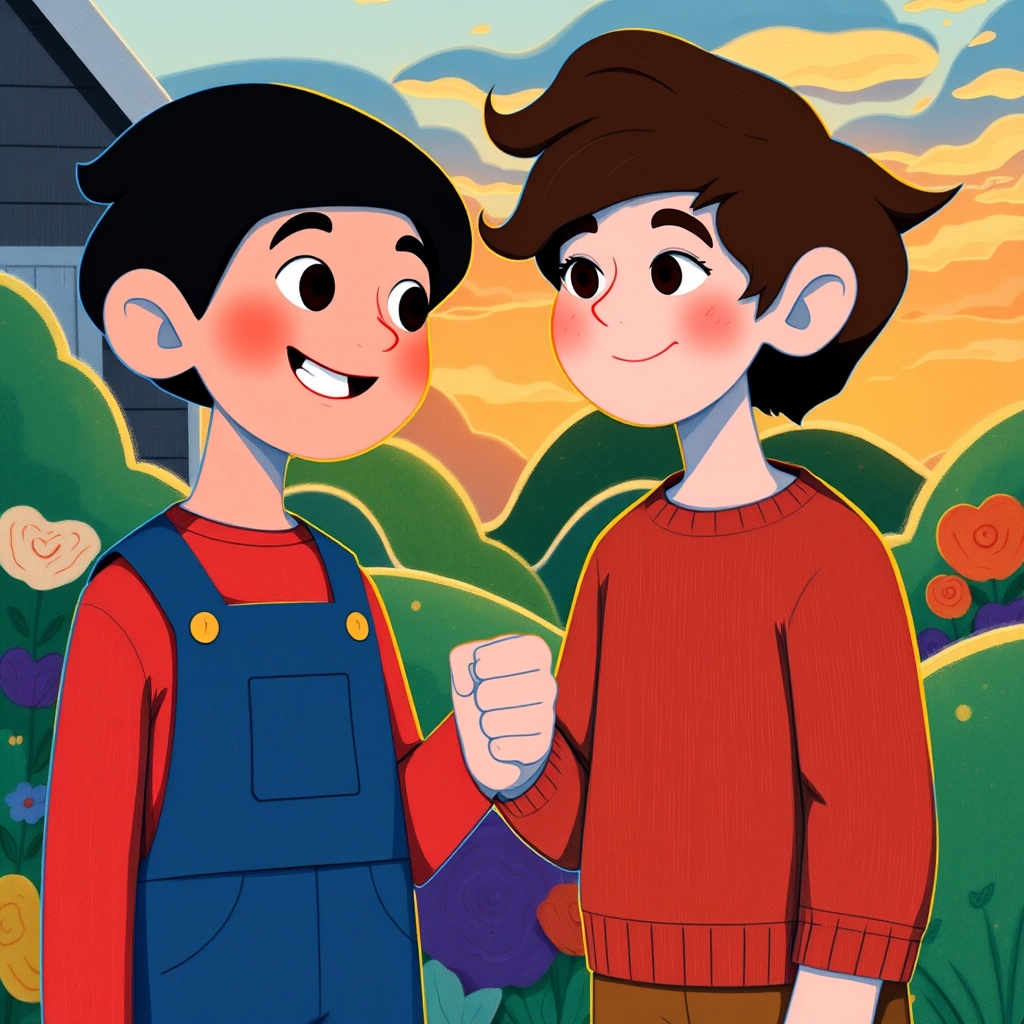 Once upon a time, in a lovely little neighborhood, there lived two boys who were as different as day and night. [Timmy](CW42DGRG) was polite, always helpful, and full of smiles. [Billy](MZHWPJPX), on the other hand, could be a little grumpy and liked causing trouble.