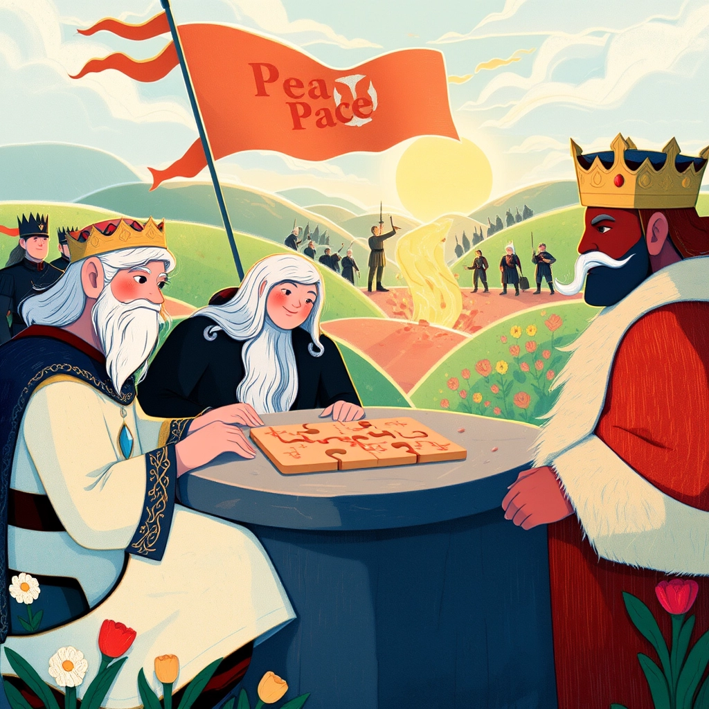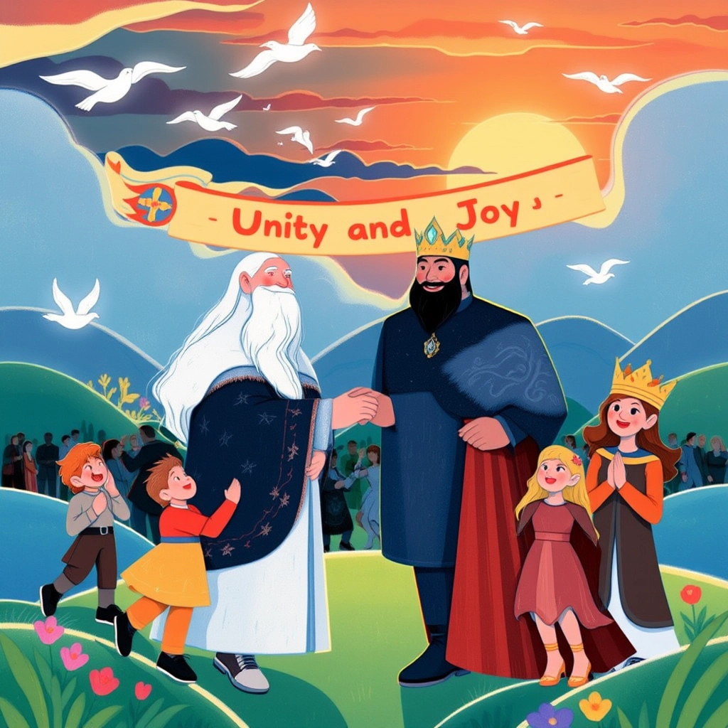 From that day on, the two kingdoms became one, living in harmony. The [Red King](BCLSTDYV) learned the value of peace, and the [White King](NLF67Z6M) appreciated the power of bravery. Most of all, everyone was happy.