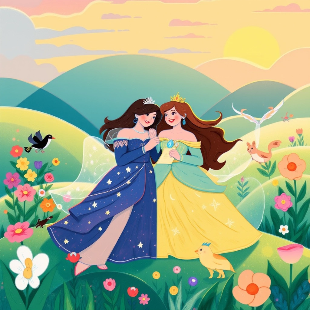 One sunny morning, the princesses discovered a mysterious map hidden in the royal library. 'Look!' said [Mia](XVWBVKQ6), pointing to an X on the map. 'It's a treasure map!'