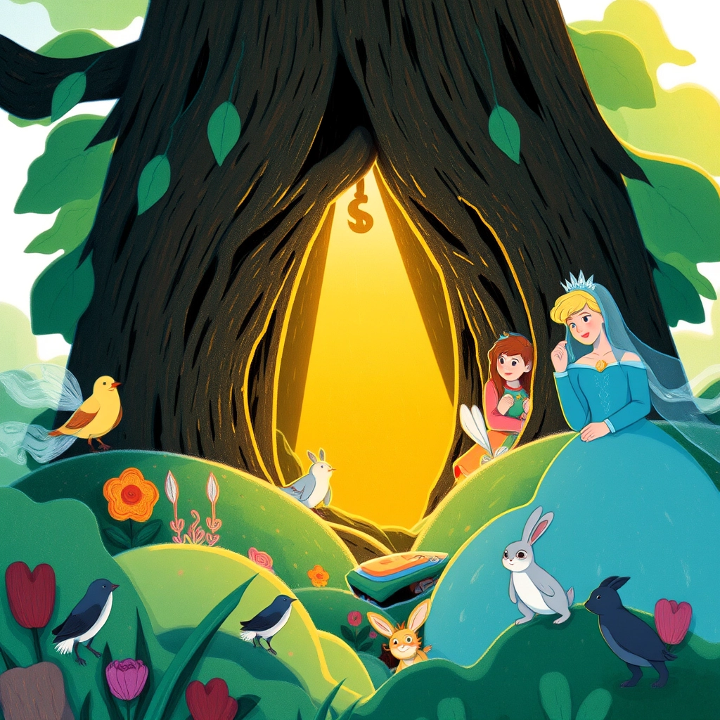 In the meadow, they discovered a golden key hidden inside a hollow tree. It shimmered brightly in the sunlight.