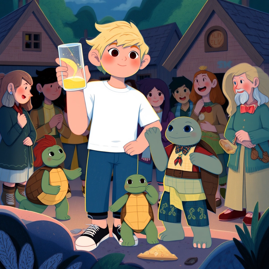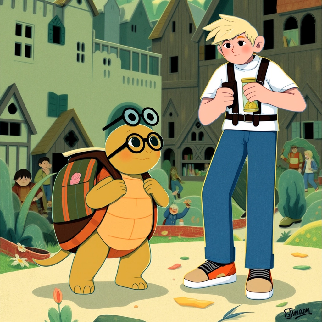 'Hey, you!' called a small voice. [Sam](QCJHZMZW) turned to see a talking tortoise wearing glasses and a tiny backpack. 'I’m [Tinker](JBFCKV3Q),' the tortoise said. 'We need your help!'