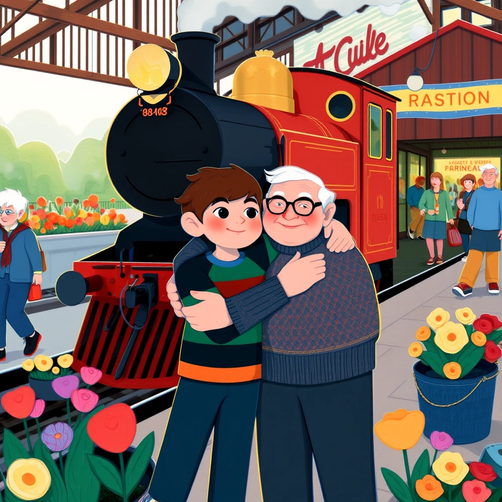 [Christopher](XPQKGKZQ) ran straight into [Grandpa](VC46HJVV)’s hug, his heart filled with joy as [Grandpa](VC46HJVV) told him about the fun they’d have riding a small antique train in the village!