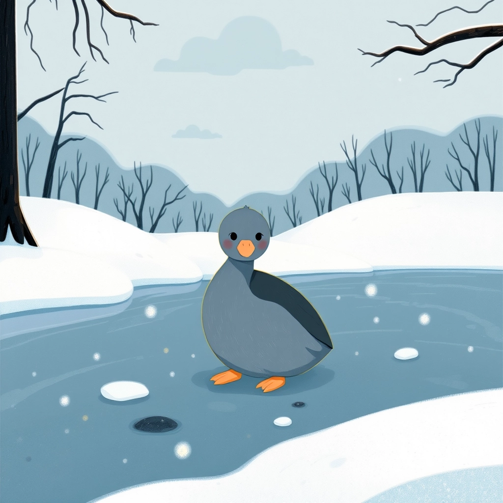 When winter came, the pond where the duckling rested froze over. He shivered and dreamed of a warm place where he could be happy and accepted.