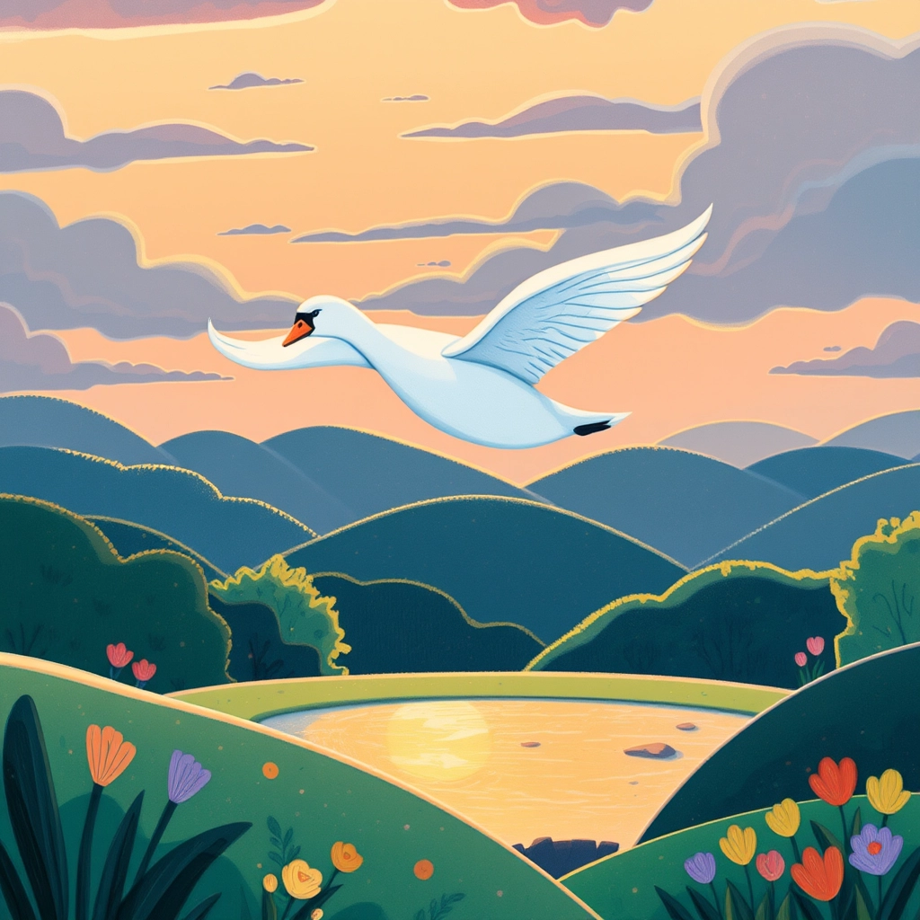 The duckling, now fully grown, gazed into the water. A radiant swan stared back at him. Could it be? He had transformed! All his sadness melted away.