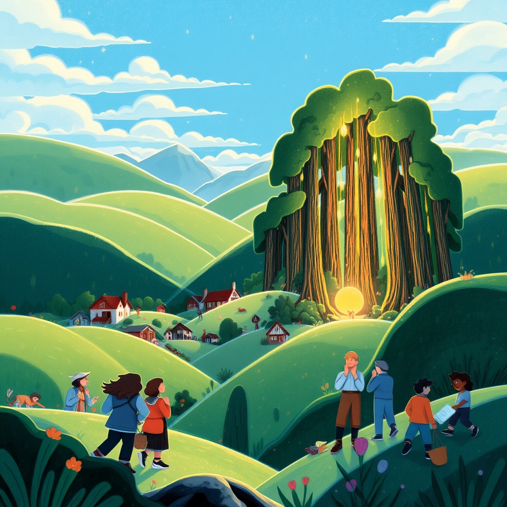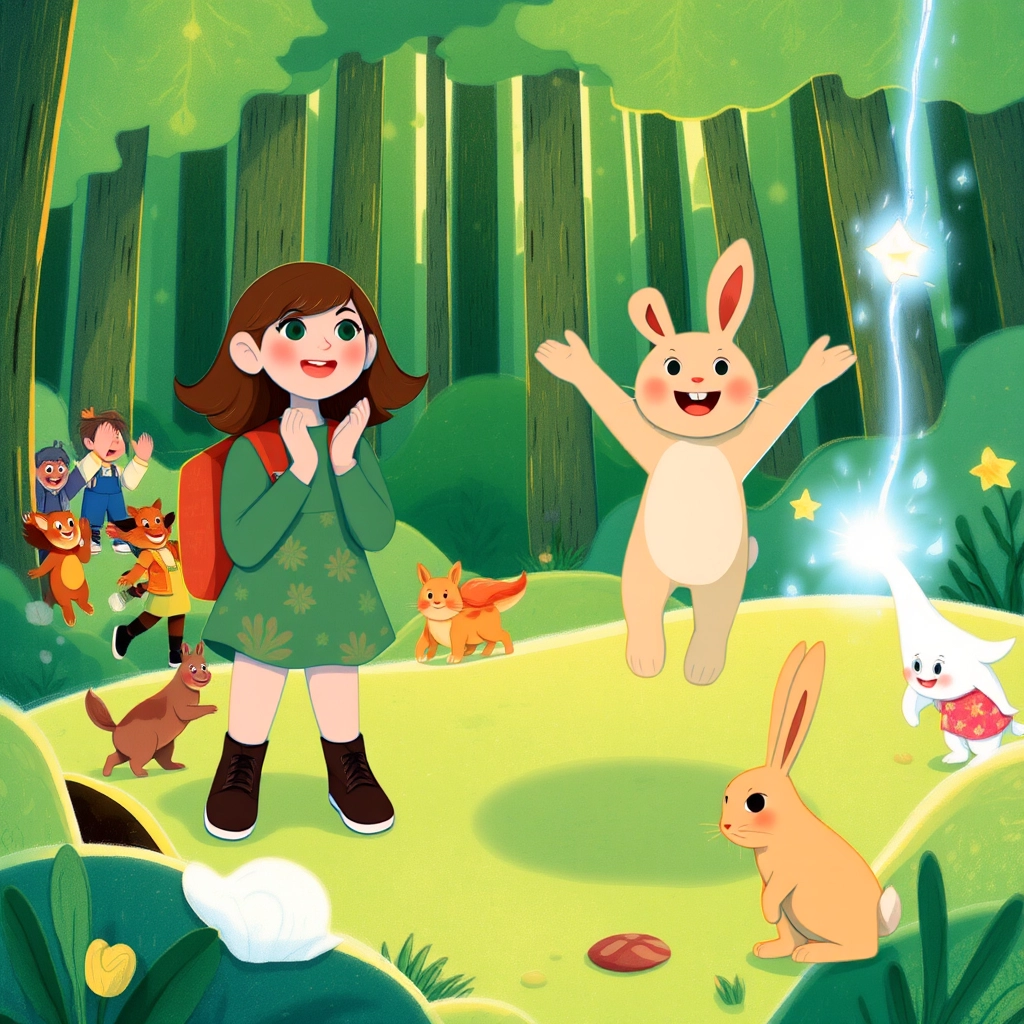 They arrived at a clearing where animals of all kinds gathered. A wise old owl perched on a branch, speaking to a shy rabbit trembling in the grass. [Flicker](4XLTF4K7) said, 'Today, we’ll learn about courage.'