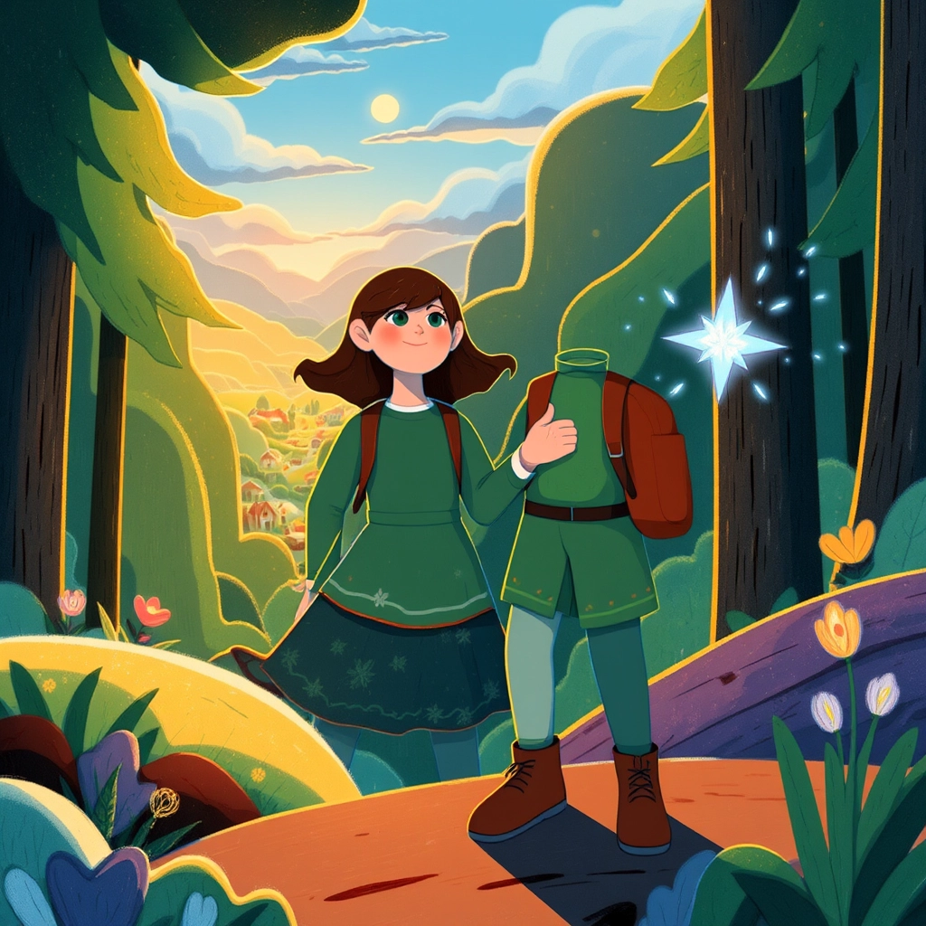 After a day filled with lessons about courage and kindness, [Lily](9JQPYXQQ) felt her heart grow bigger with all the magical wisdom she had gained. [Flicker](4XLTF4K7) said, 'Remember these lessons always—they will help you shine!'