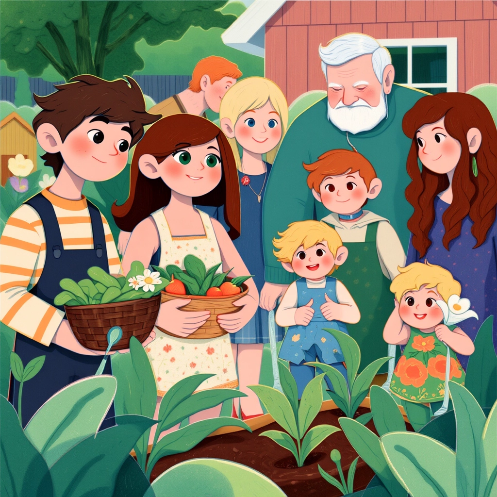 As spring arrived, the family planted a garden filled with vegetables and flowers. They worked together joyfully, laughing under the bright sun.