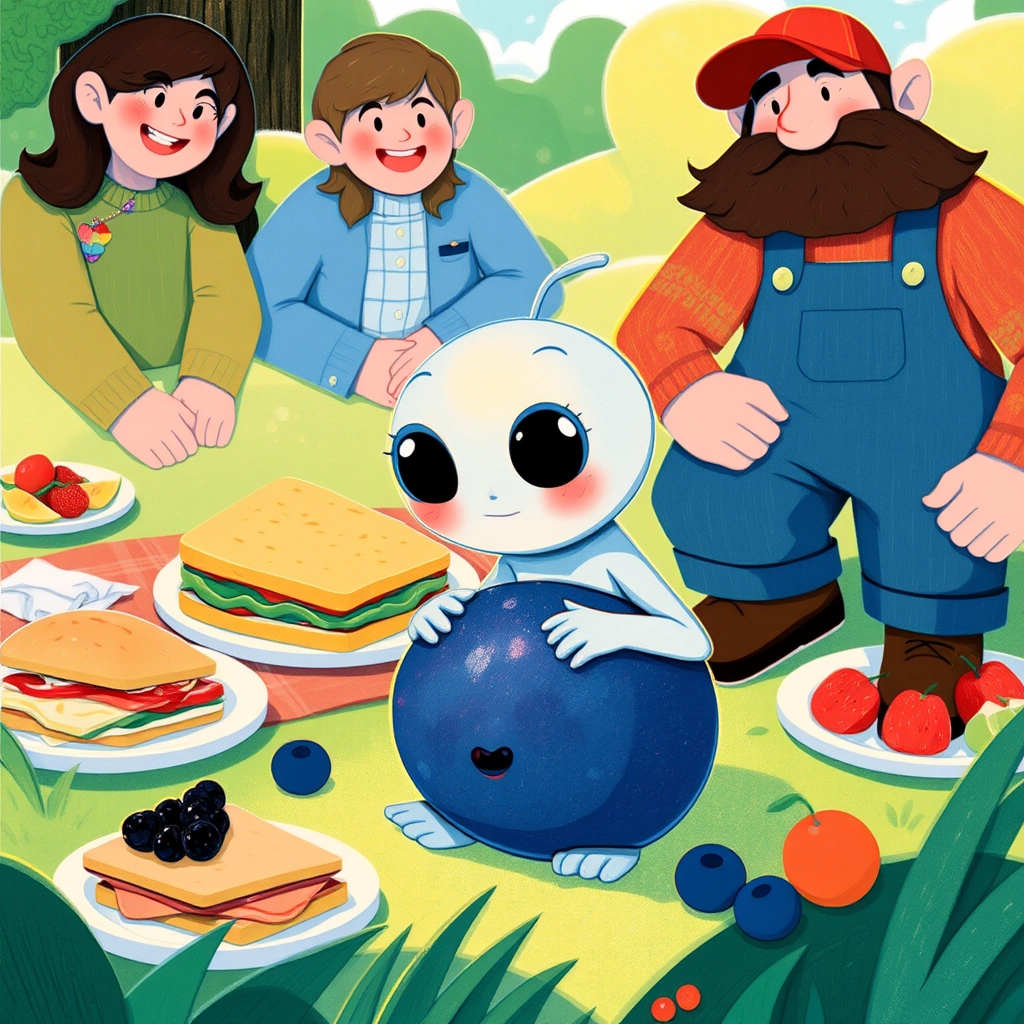 Next, [Tom](NNCHPVMR) showed me how these tall people ate their food. I was given a blueberry, but to me, it was the size of a boulder! I nibbled on it like it was a giant treat. 'Everything here is so big!' I exclaimed, making everyone laugh again.
