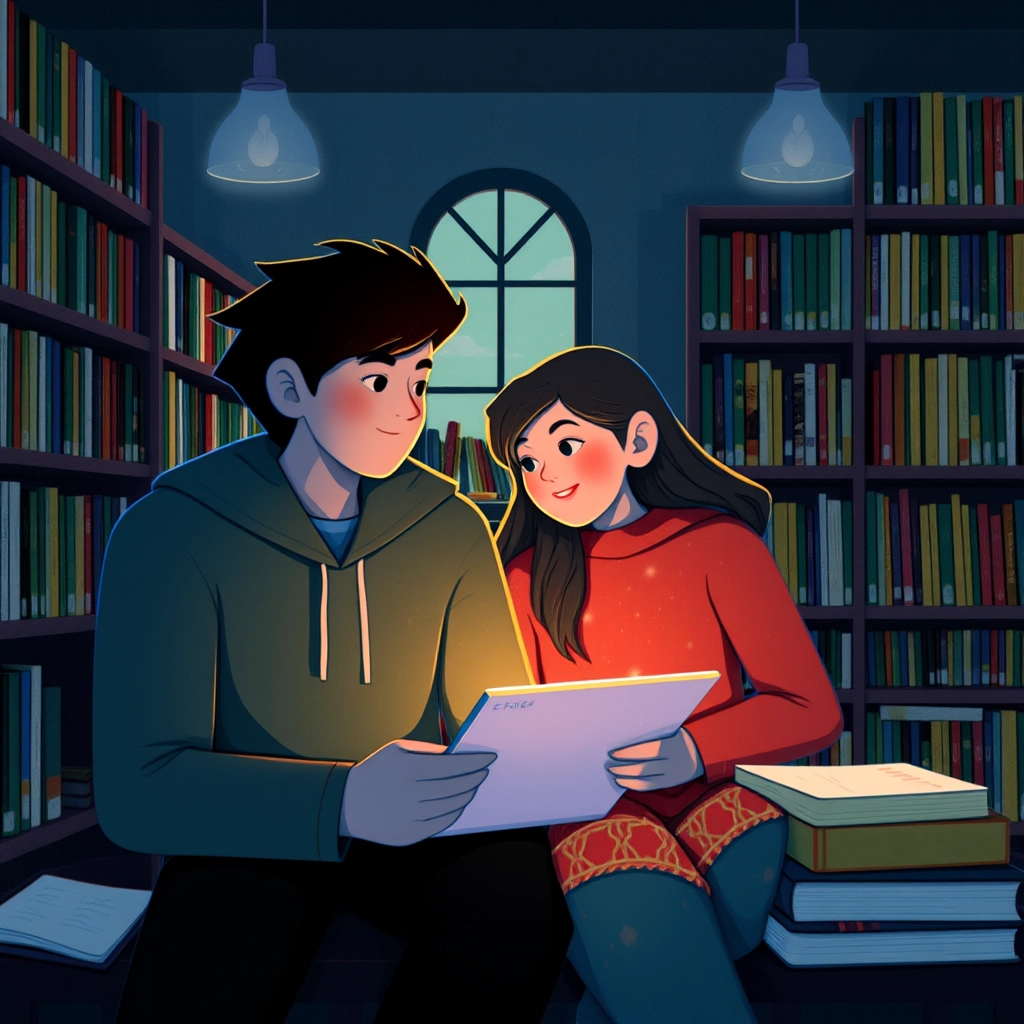 Presentation day arrived. Ethan stood in front of the class with Sophia, trembling at first. But when Sophia glanced his way with a reassuring smile, he found the courage to speak confidently.