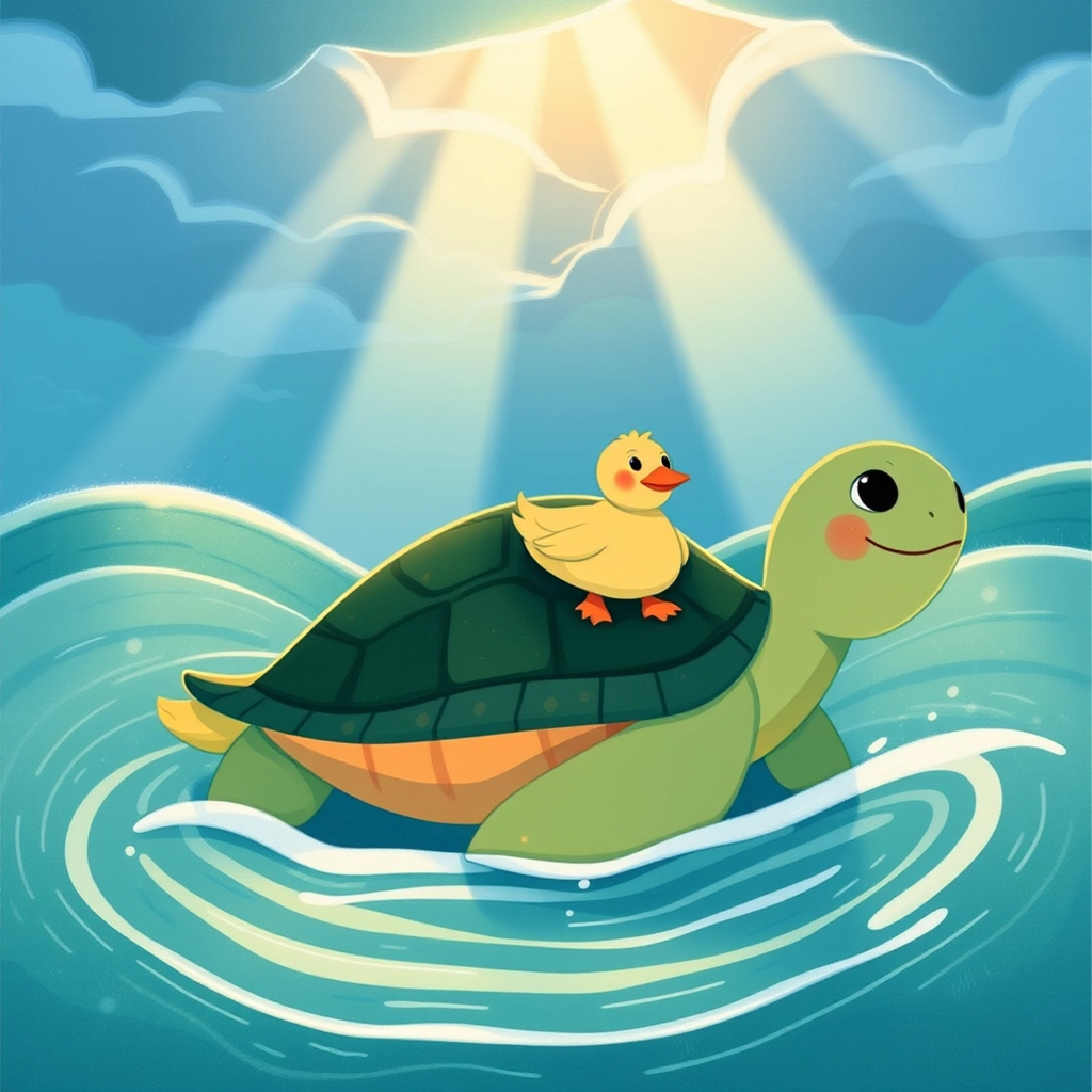 [Timmy](KHWTF7DQ) gently scooped the duckling onto his shell and made his way back to the shore, one paddle at a time. He didn’t stop, even as the wind pushed against him.