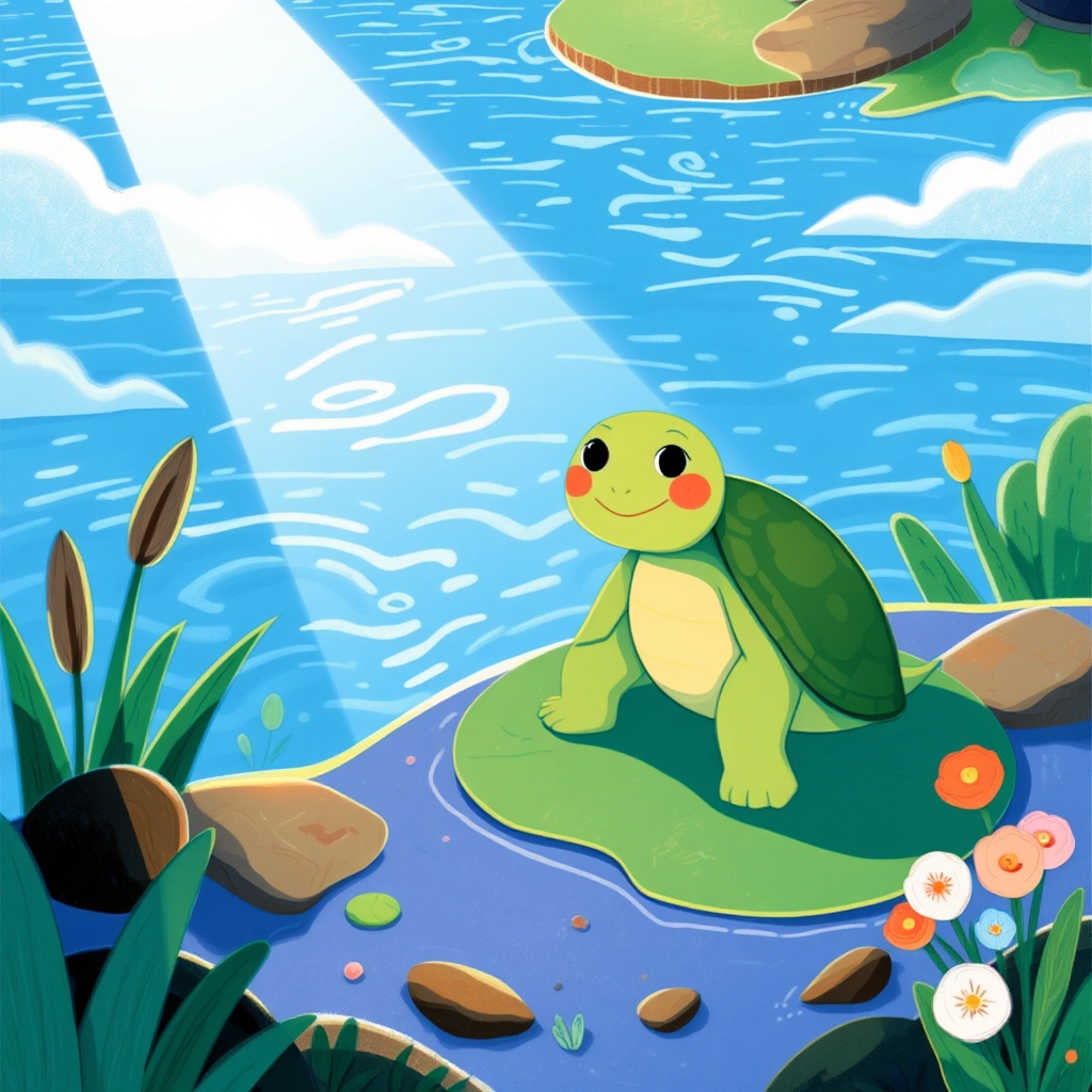 Once upon a time, in a big, sparkling pond, there lived a little turtle named [Timmy](KHWTF7DQ). [Timmy](KHWTF7DQ) was a gentle soul, always with a kind smile, but he wasn’t the fastest swimmer in the pond.