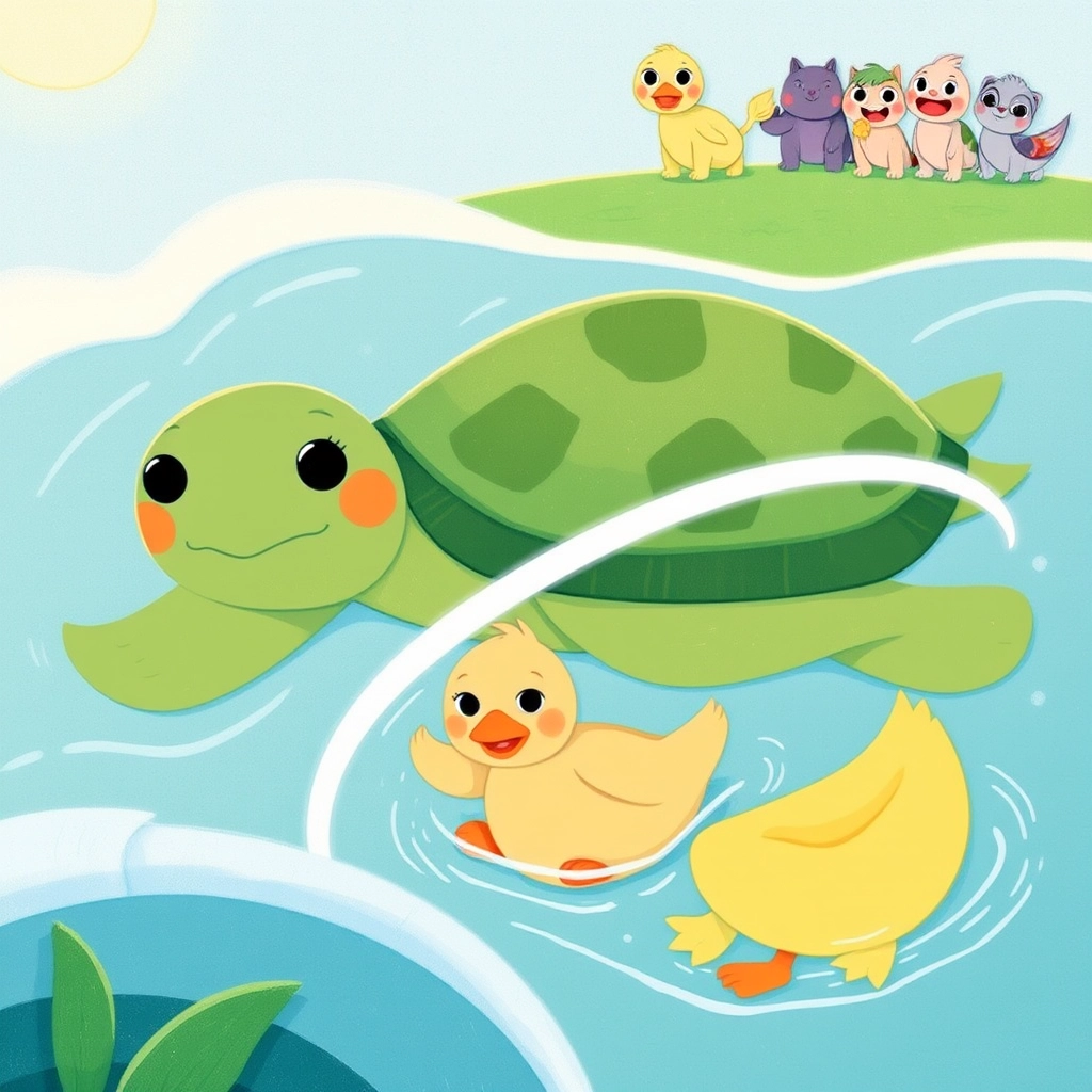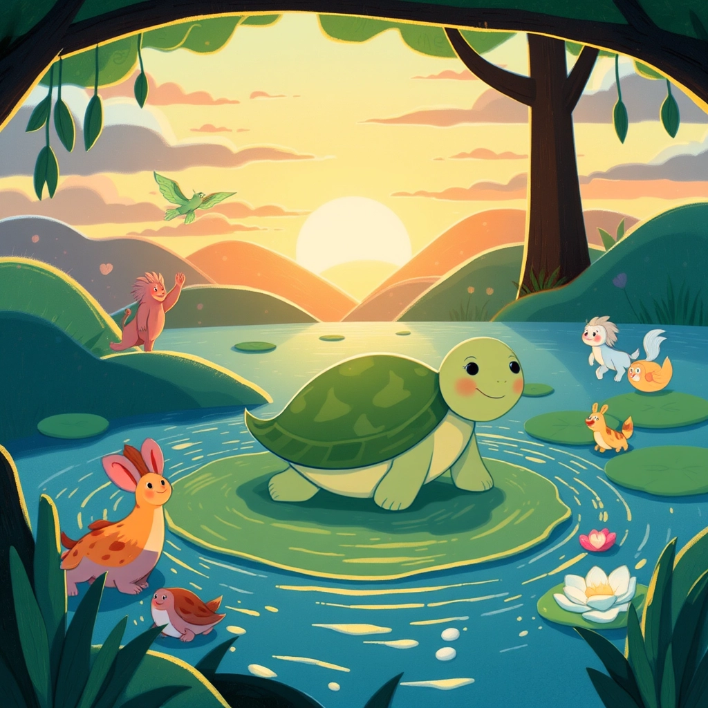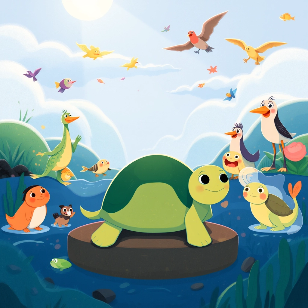 Every day, [Timmy](KHWTF7DQ)’s friends—frogs, fish, and birds—laughed and teased him for being so slow. ‘Catch up, [Timmy](KHWTF7DQ)!’ they’d shout as they zipped away from him.