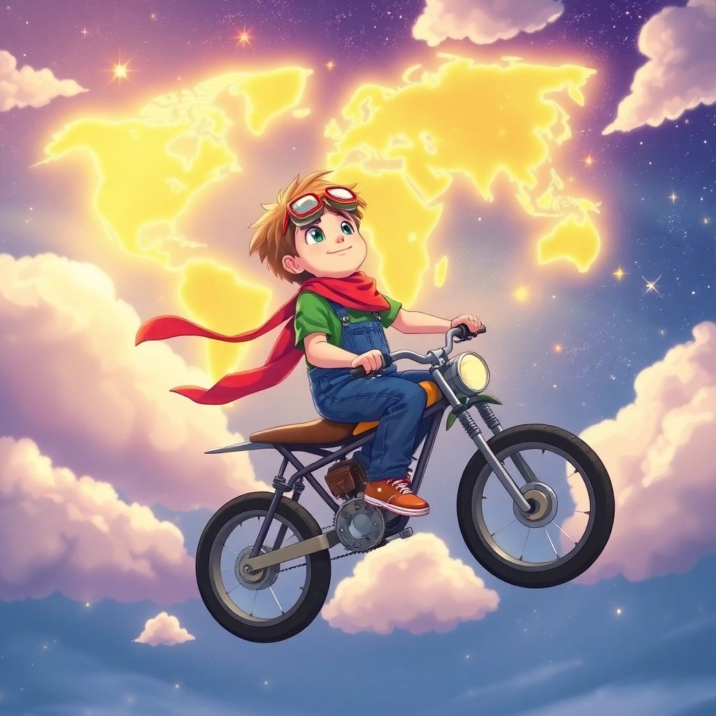 [Timothy](W2HMKBF3)'s invention had taken him across the world, meeting new friends and exploring amazing places. But it was only the beginning! With the Flying Bicycle 3000, the sky was no longer the limit.