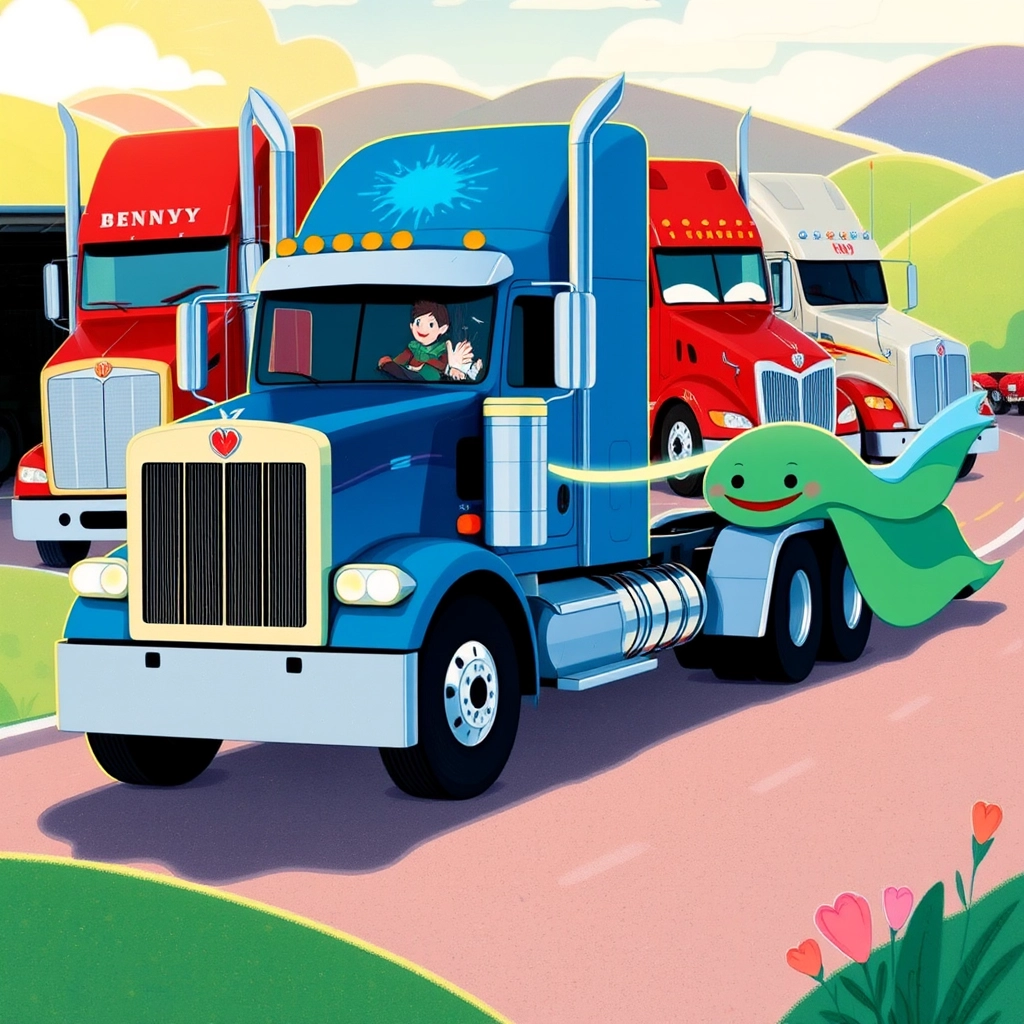 [Pepper](S4GQ9B6P) the Peterbilt chimed in, "I use my power to pull bulky trailers full of goods to big cities and farms! Being reliable makes me proud!" [Ellie](V6WSFSN9) beamed, inspired by [Pepper](S4GQ9B6P)’s hardworking attitude.