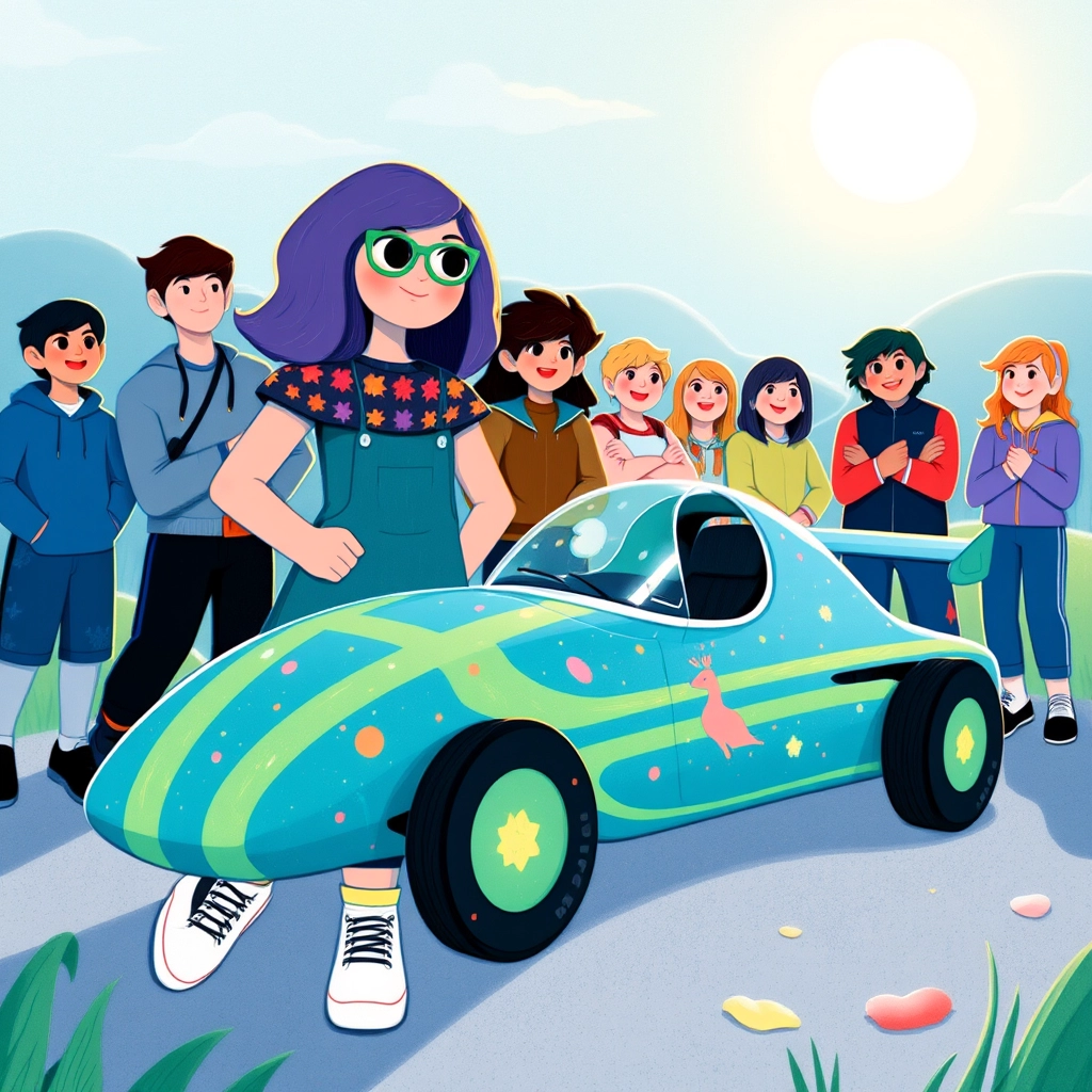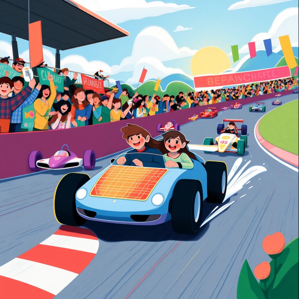 The Turbo Teens Racing Team entered the regional championships. Their car amazed the crowd, who couldn't believe it was built by four teens! They sped through the track, leaving competitors in awe.